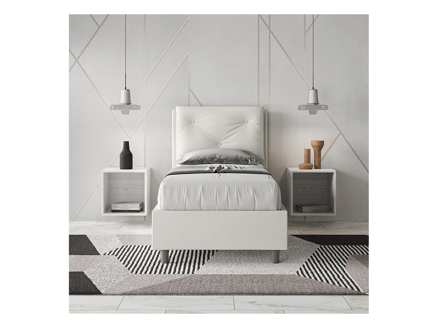 Cama tapizada símil piel blanca Appia sin somier 80x200