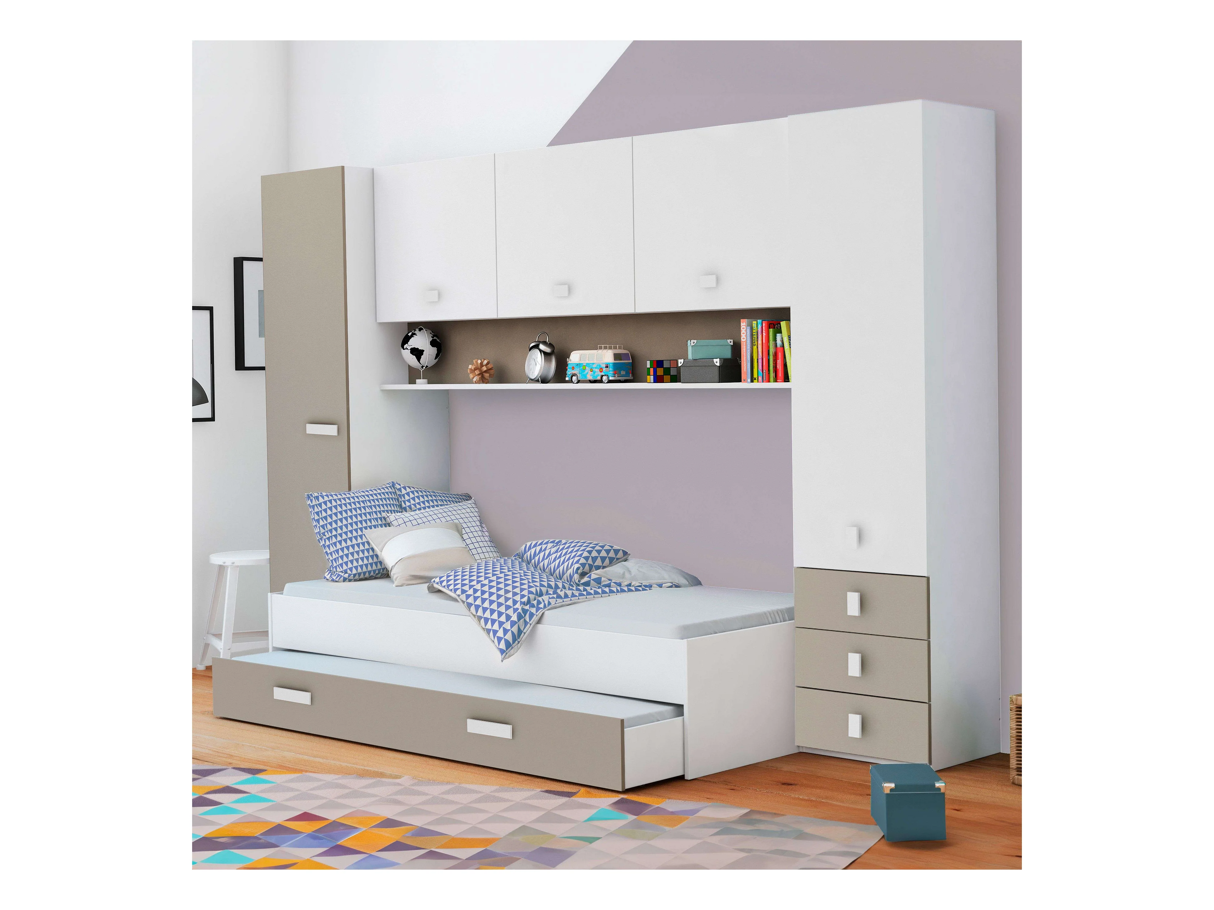 Cama Tidy con Cajones Habitación Infantil Juvenil Blanco y Arcilla 90x200 cm