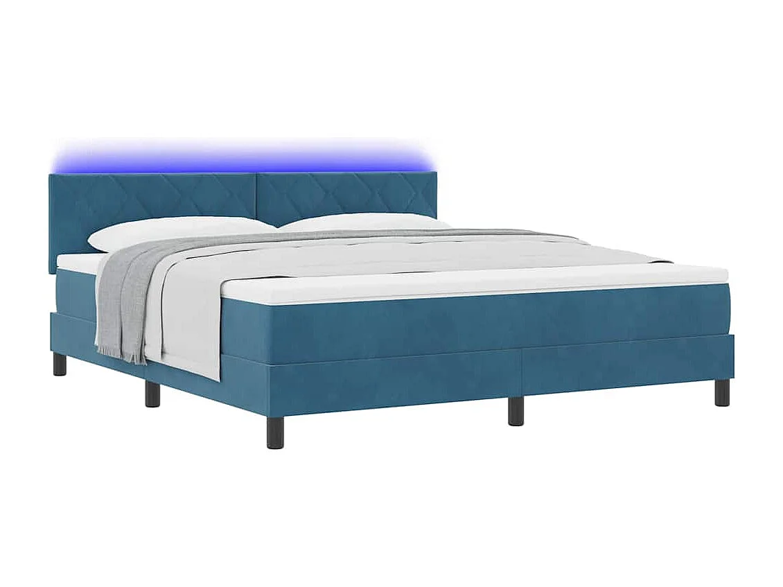 Cama box spring colchón y LED terciopelo azul oscuro 180x200 cm