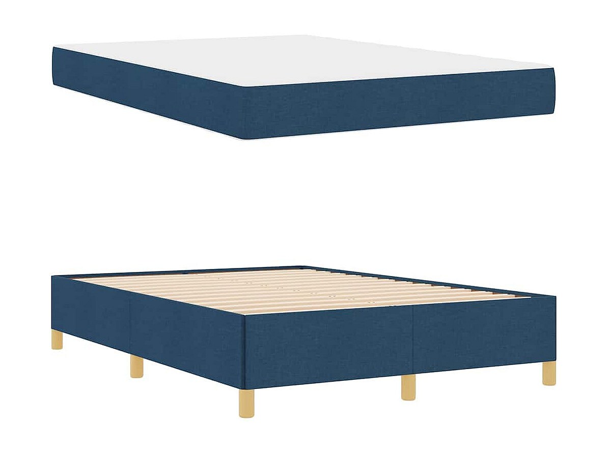 Cama tipo Box Spring Azul y Blanco 140 x 190 cm tela