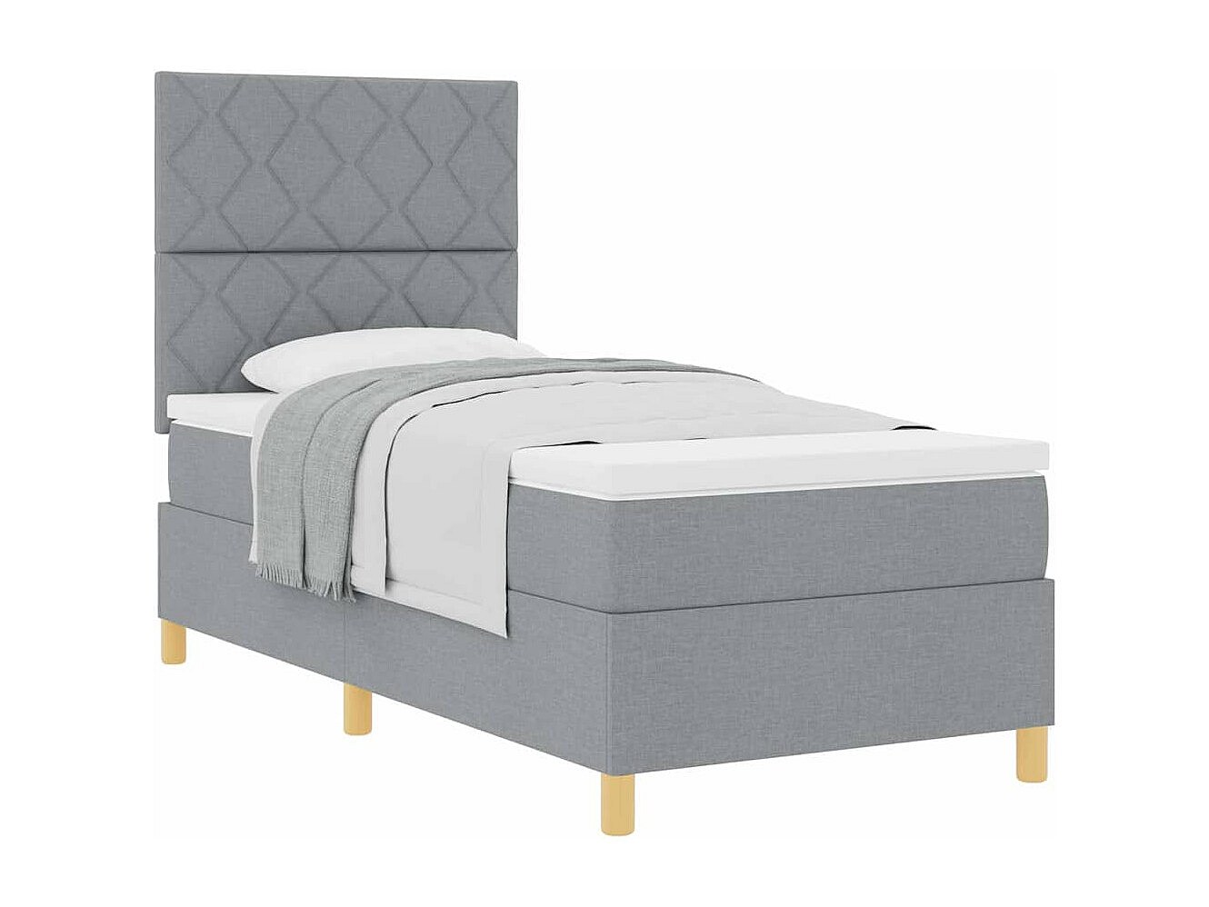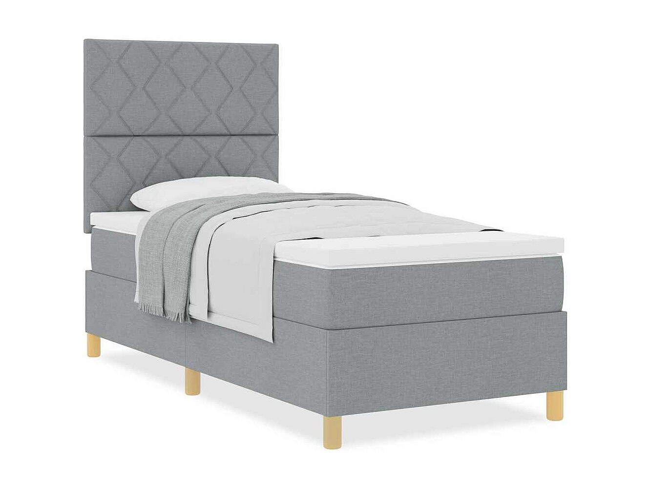 Cama tipo Box Spring con cabecera Gris claro 90 x 200 cm tela