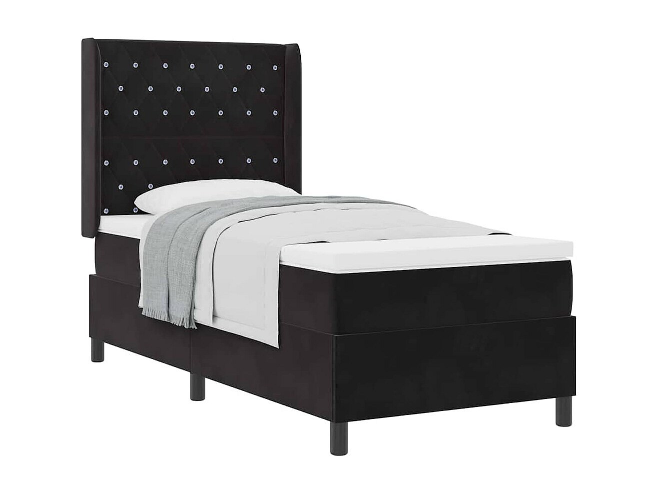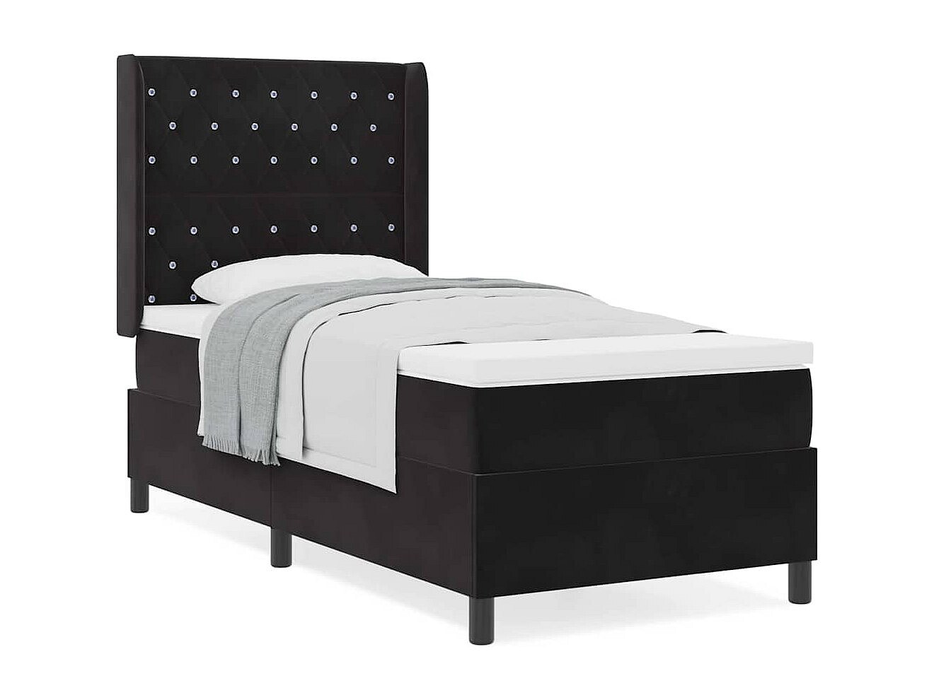 Cama tipo Box Spring con cabecera Negro 100 x 200 cm Terciopelo