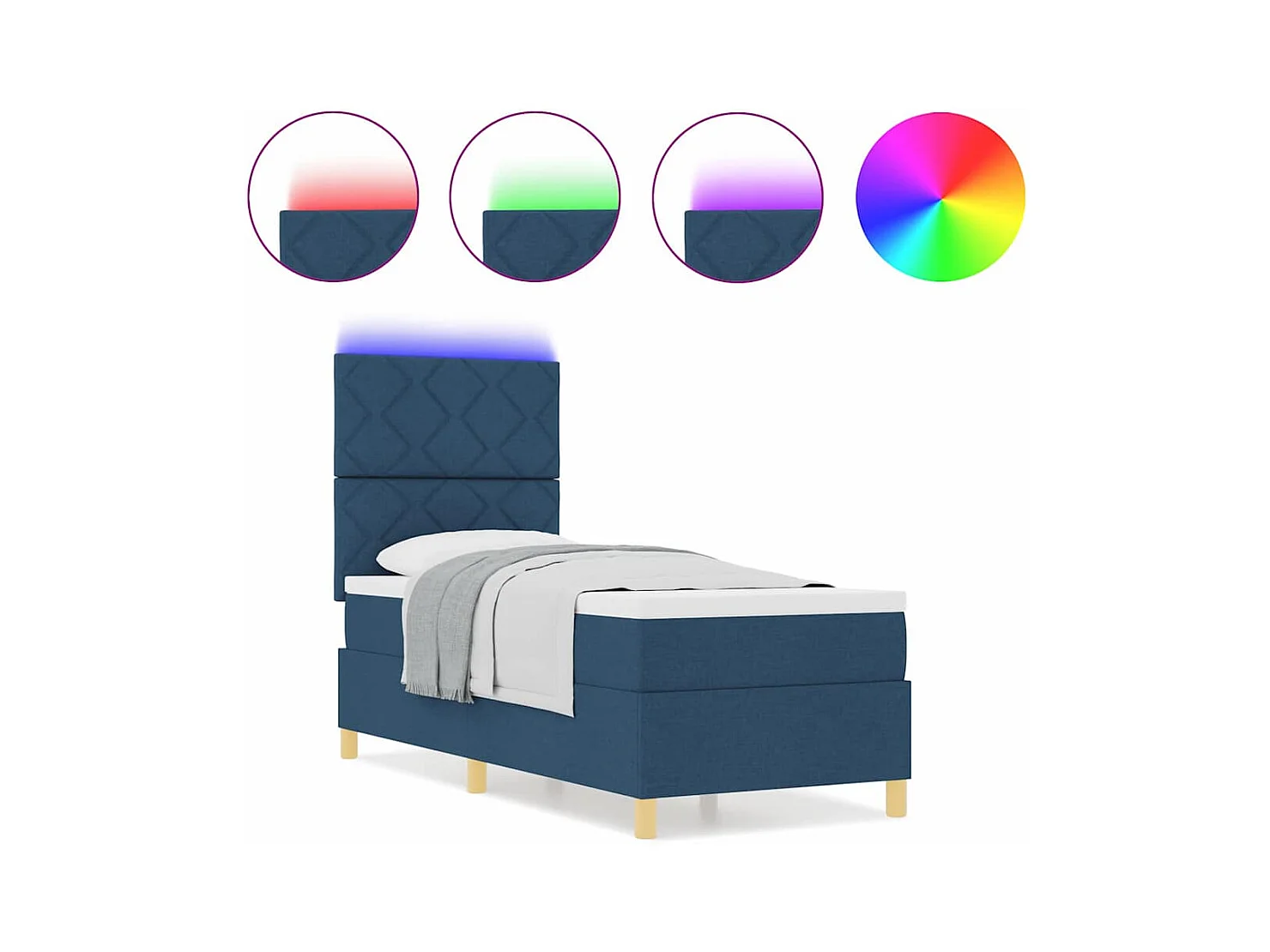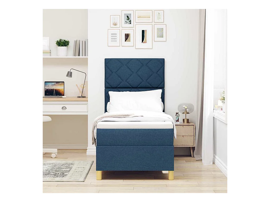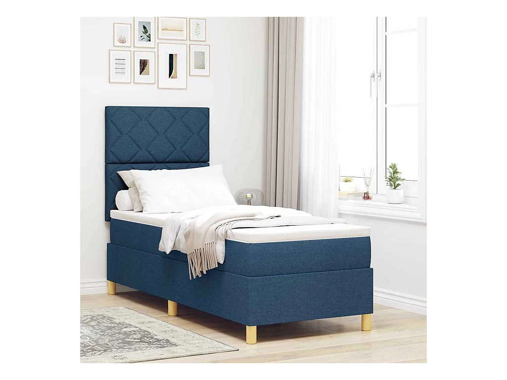 Cama tipo Box Spring con colchón Azul 80 x 200 cm tela