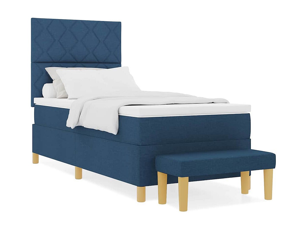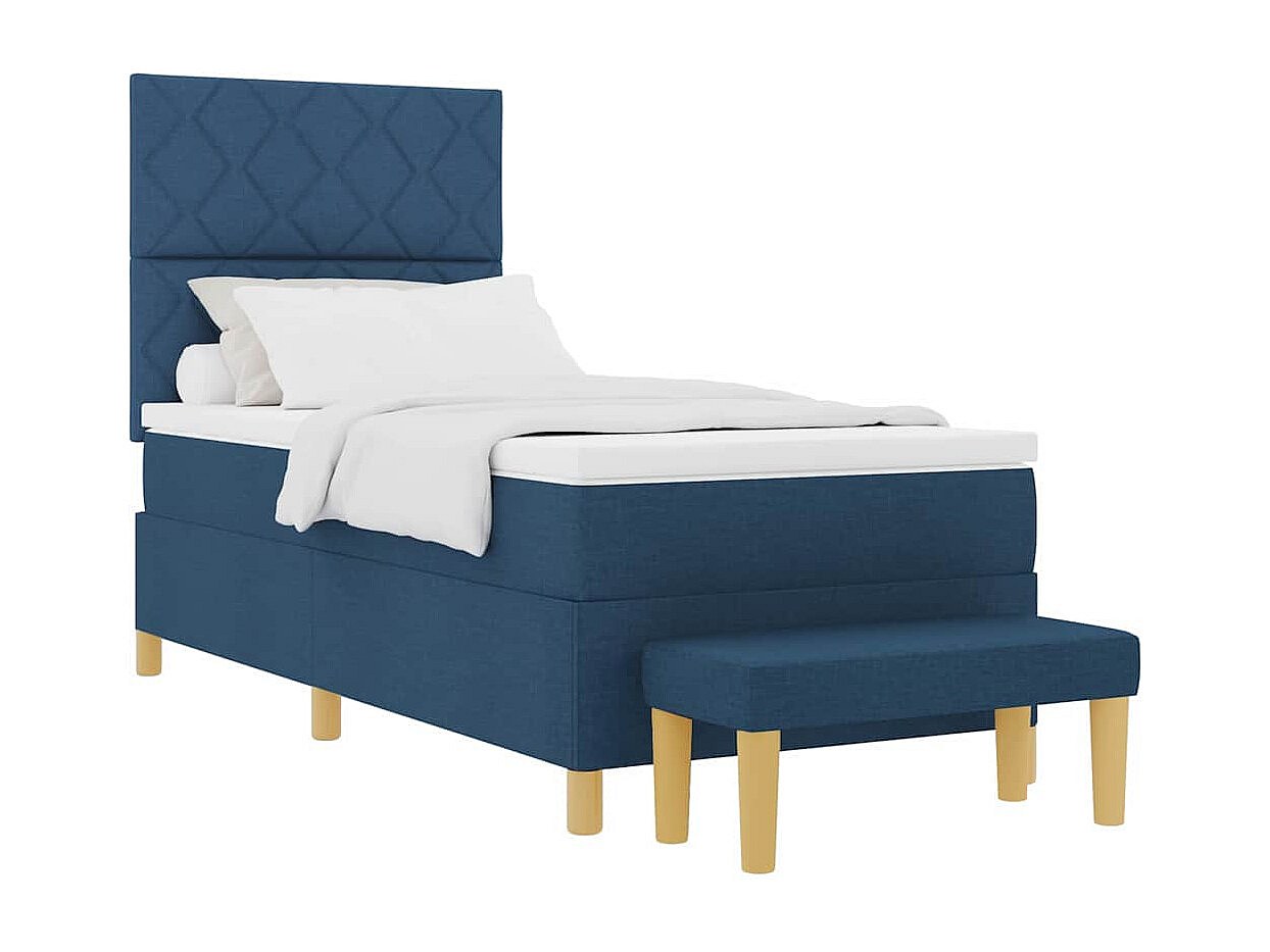 Cama tipo Box Spring con colchón Azul 90 x 190 cm tela