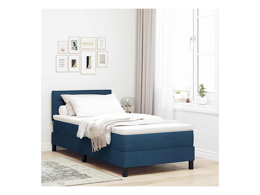 Cama tipo Box Spring con colchón Azul 90 x 200 cm tela