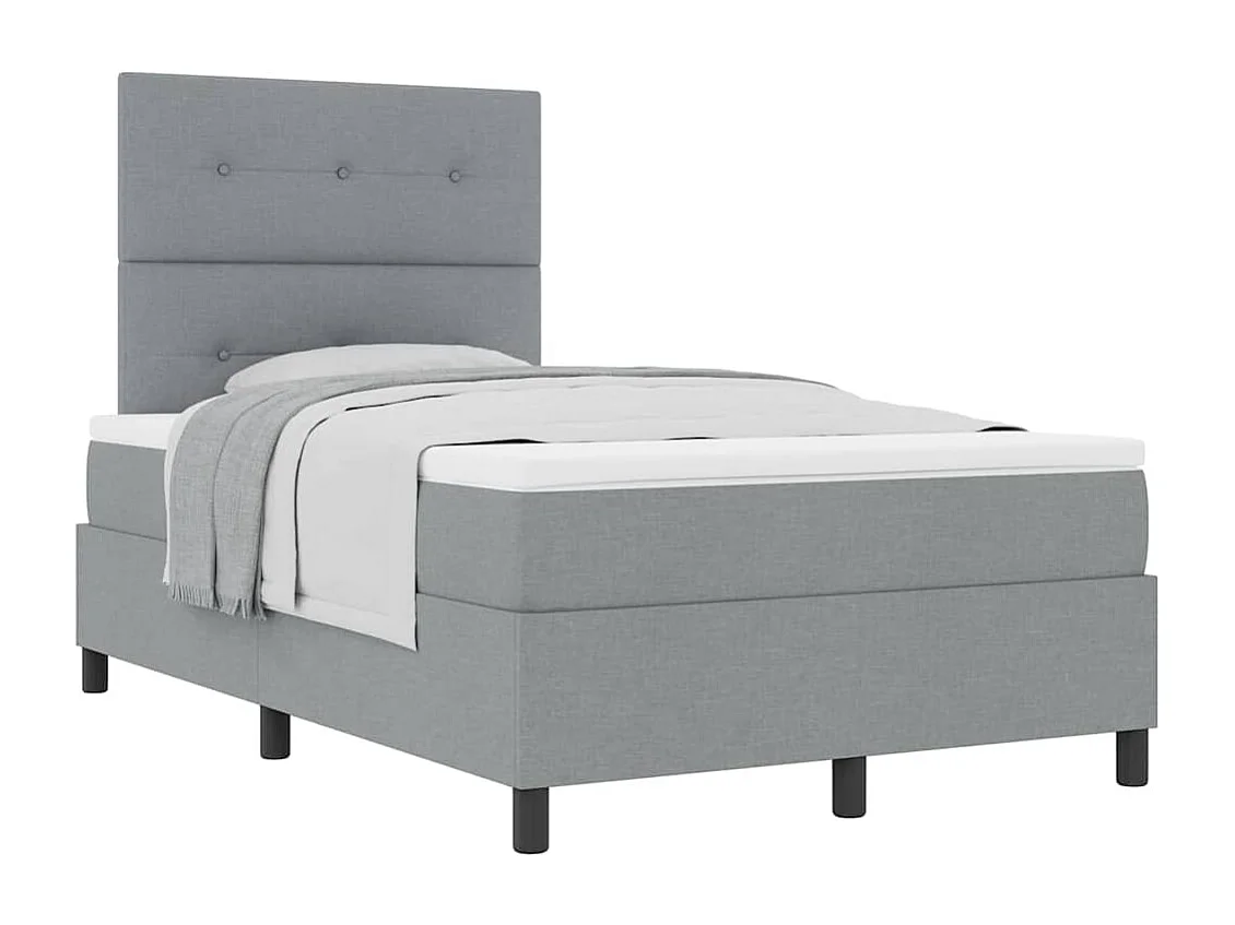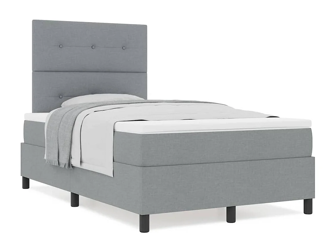 Cama tipo Box Spring con cabecera Gris claro 120 x 200 cm tela