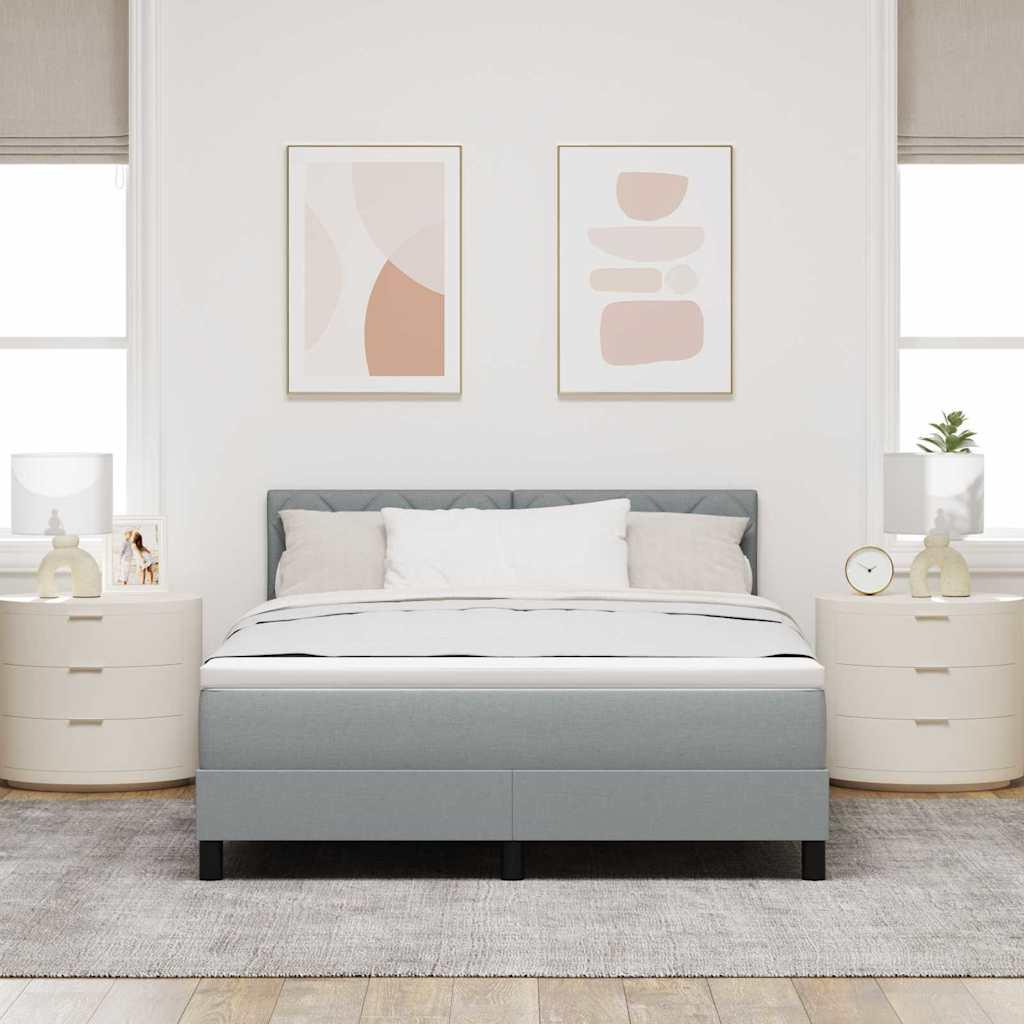 Cama tipo Box Spring con colchón Gris claro 140 x 200 cm tela