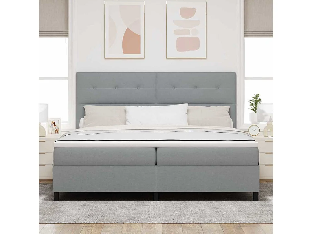 Cama tipo Box Spring con colchón Gris claro 200 x 200 cm tela
