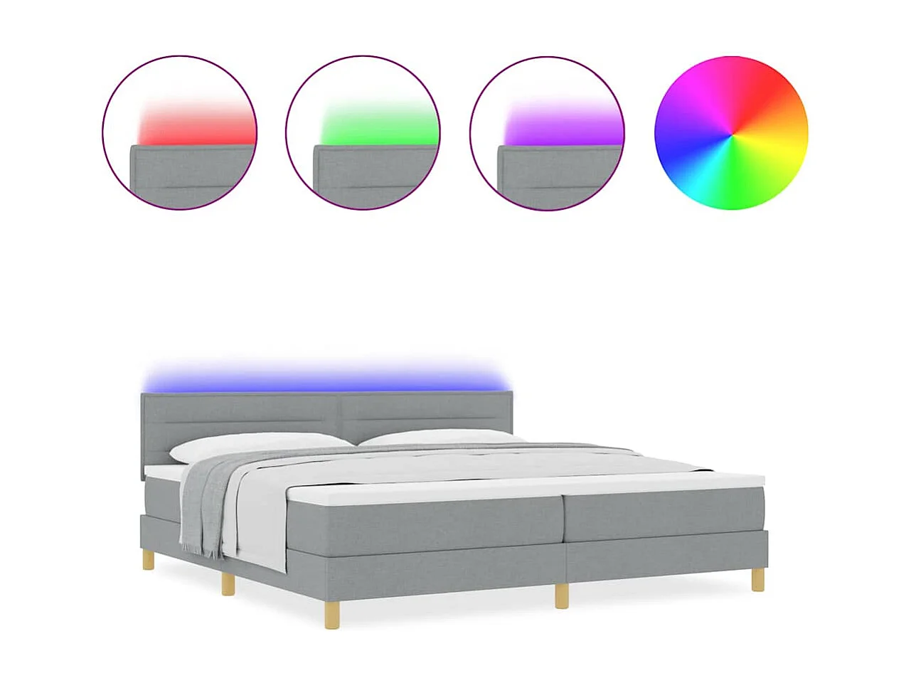 Cama tipo Box Spring con colchón Gris claro 200 x 200 cm tela