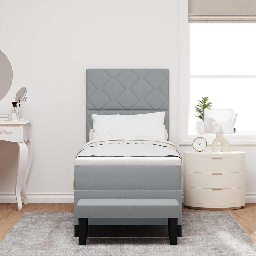 Cama tipo Box Spring con colchón Gris Claro 80 x 200 cm tela