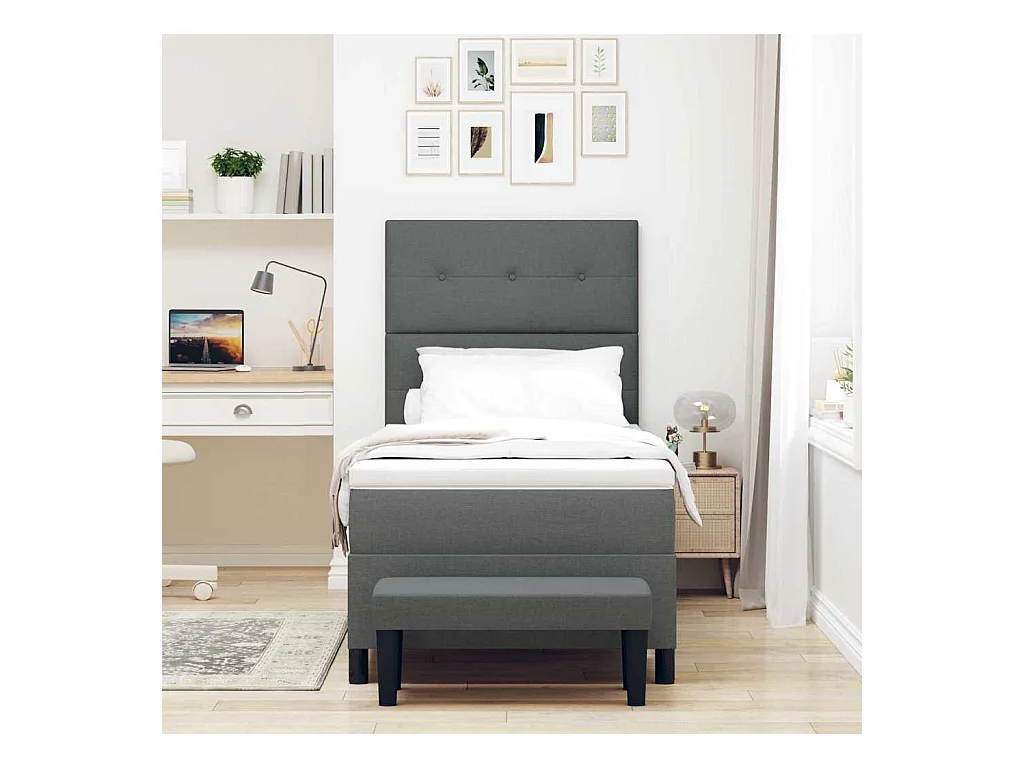 Cama tipo Box Spring con colchón Gris oscuro 100 x 200 cm tela