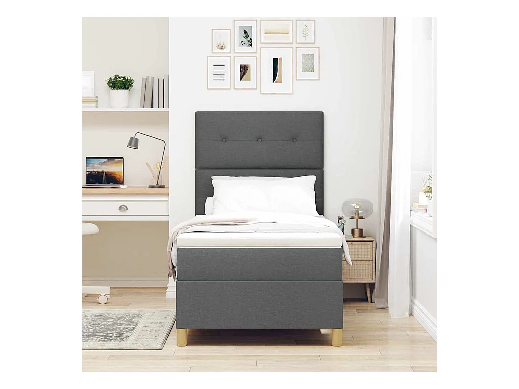 Cama tipo Box Spring con colchón Gris oscuro 100 x 200 cm tela