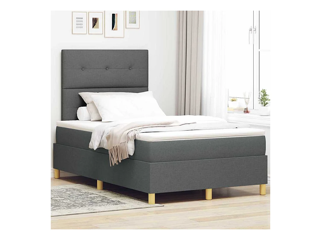 Cama tipo Box Spring con colchón Gris oscuro 120 x 200 cm tela