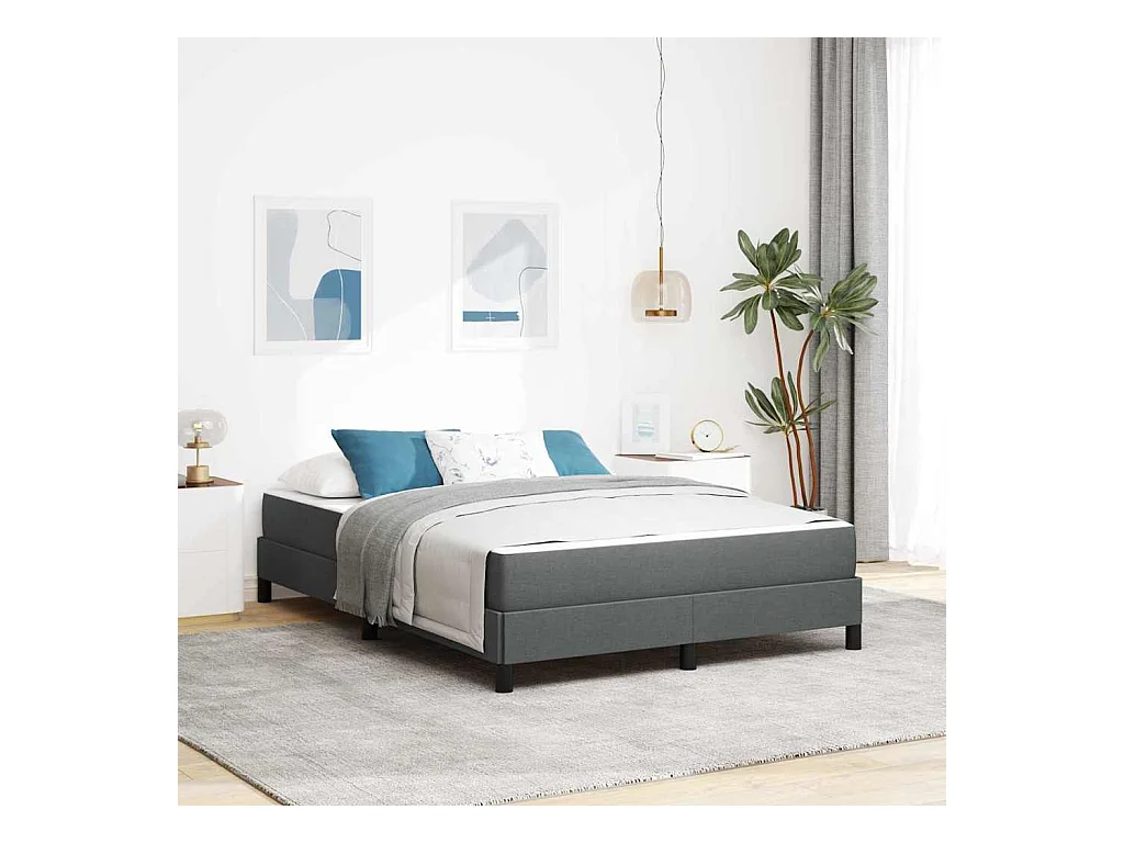 Cama box spring con colchón tela gris oscuro 140x190 cm