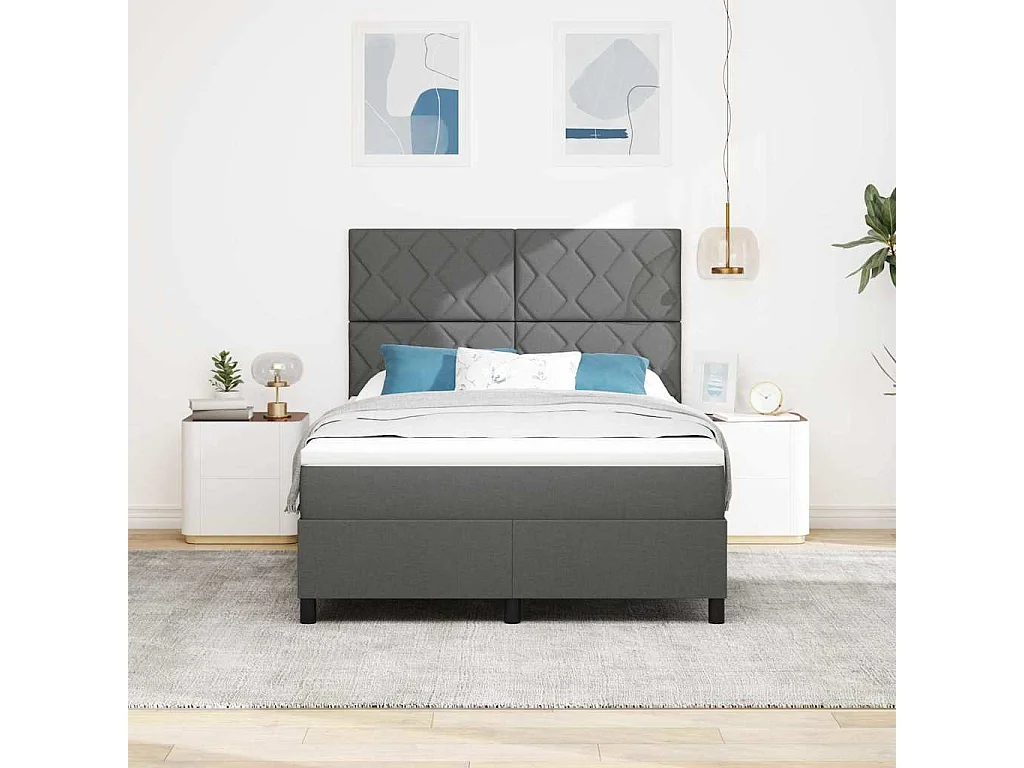 Cama box spring con colchón Gris oscuro 140 x 200 cm tela