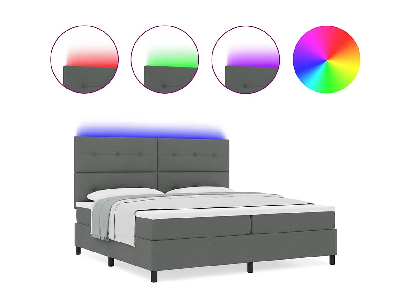 Cama tipo Box Spring con colchón Gris oscuro 200 x 200 cm tela