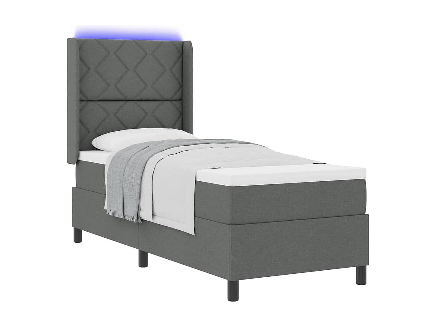 Cama tipo Box Spring con colchón Gris oscuro 80 x 200 cm tela