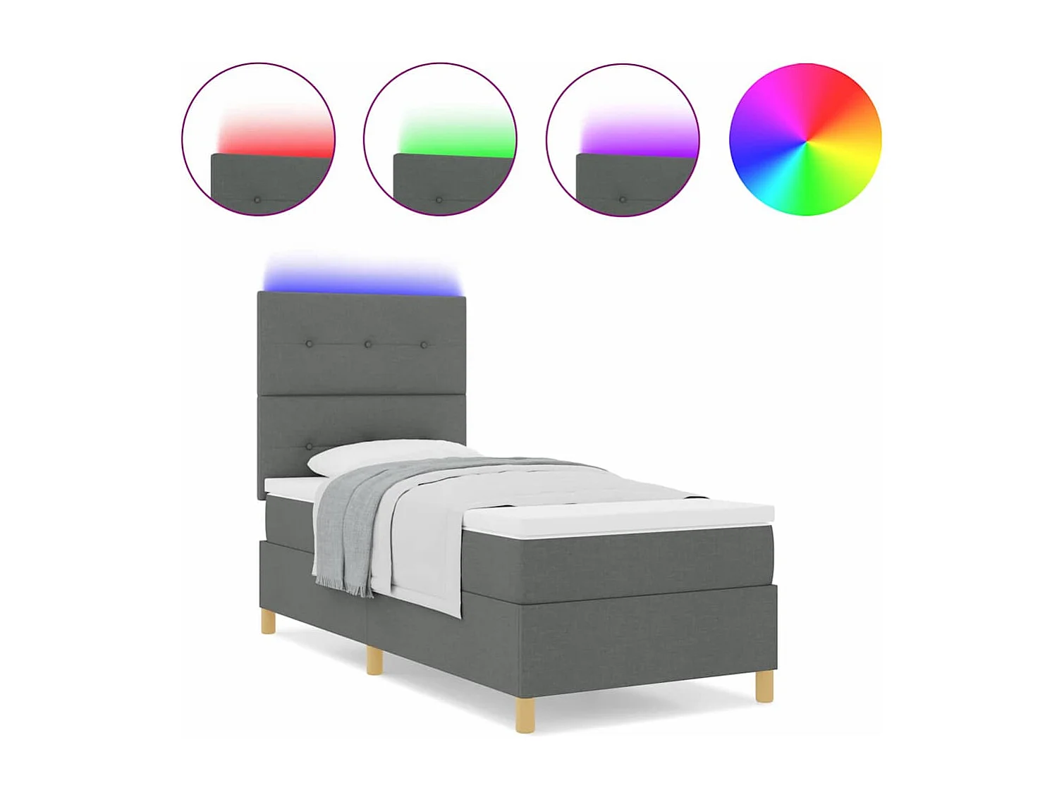 Cama tipo Box Spring con colchón Gris oscuro 90 x 200 cm tela