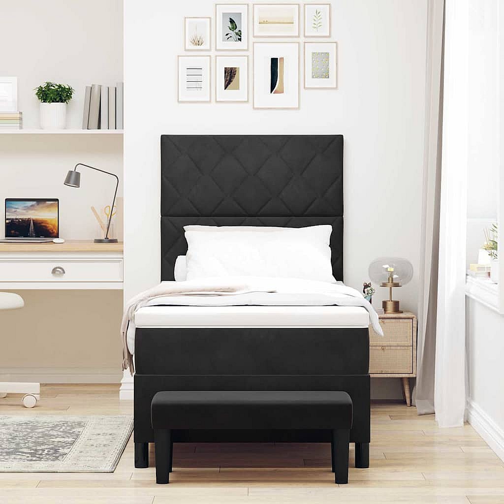 Cama box spring con colchón terciopelo negro 100x200 cm