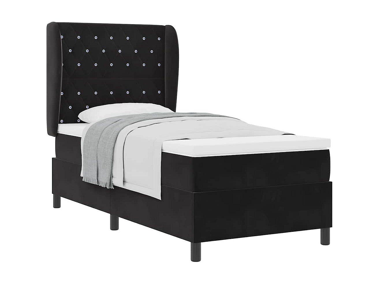 Cama tipo Box Spring con colchón Negro 100 x 200 cm Terciopelo