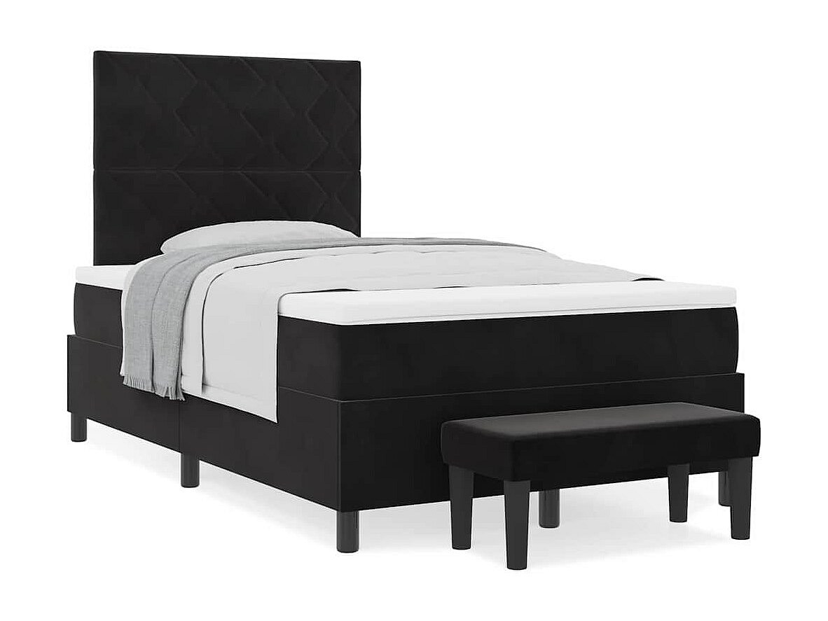 Cama tipo Box Spring con colchón Negro 120 x 190 cm Terciopelo