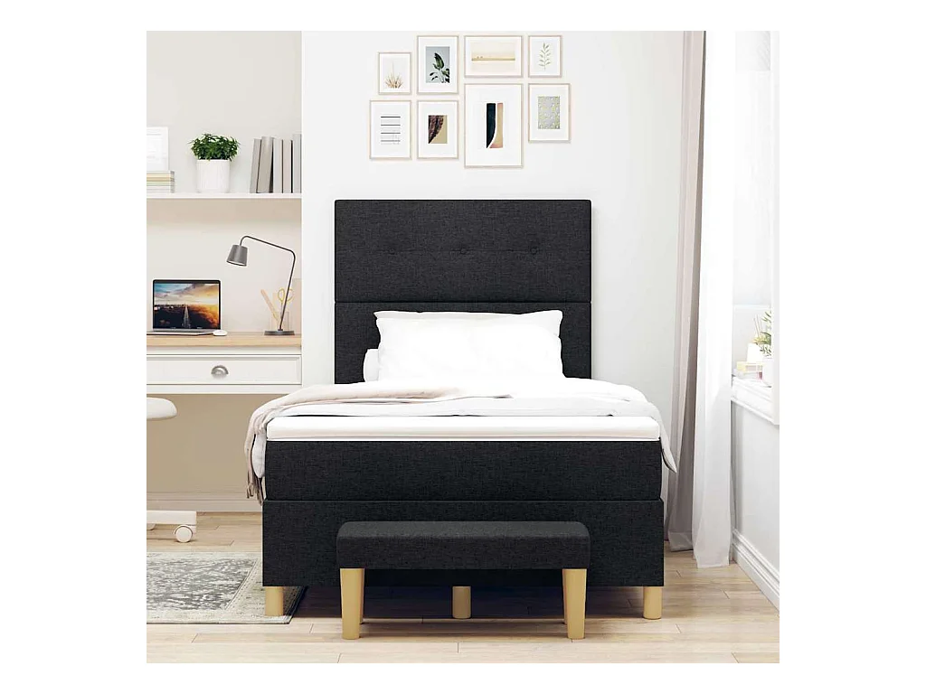 Cama tipo Box Spring con colchón Negro 120 x 200 cm tela