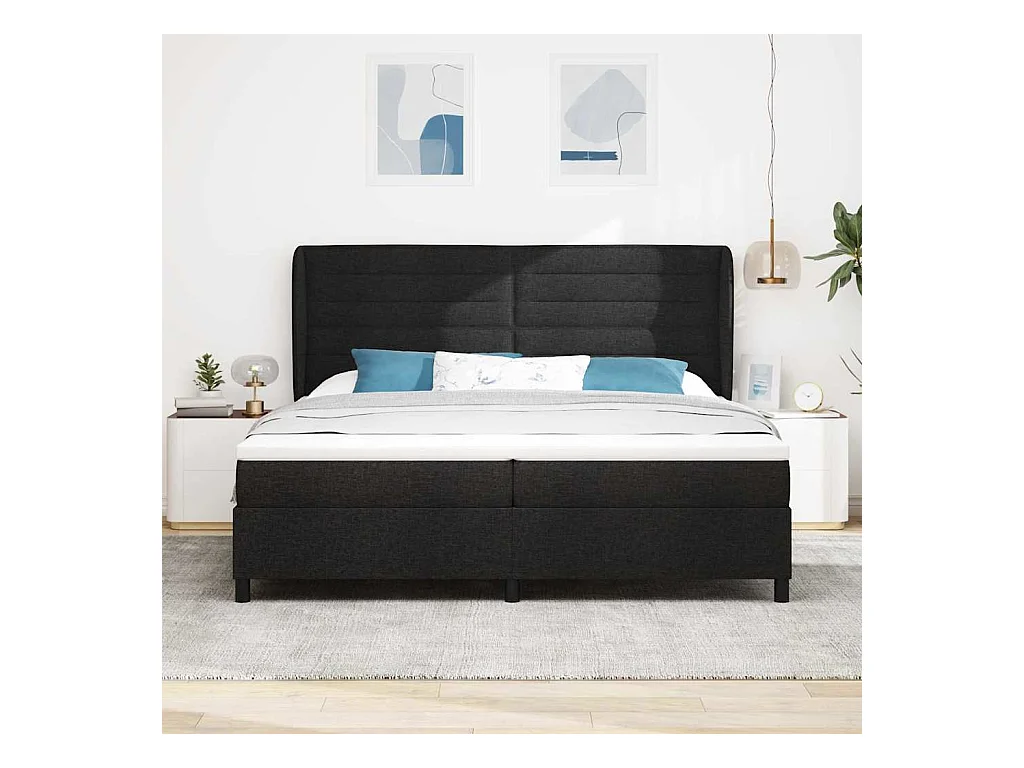 Cama tipo Box Spring con colchón Negro 200 x 200 cm tela