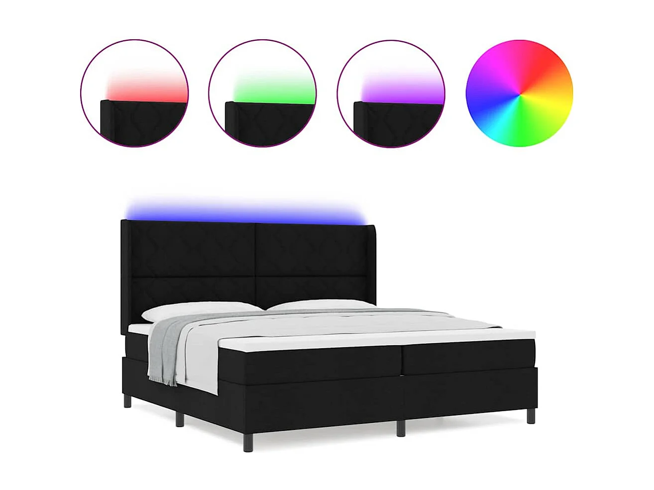 Cama tipo Box Spring con colchón Negro 200 x 200 cm tela