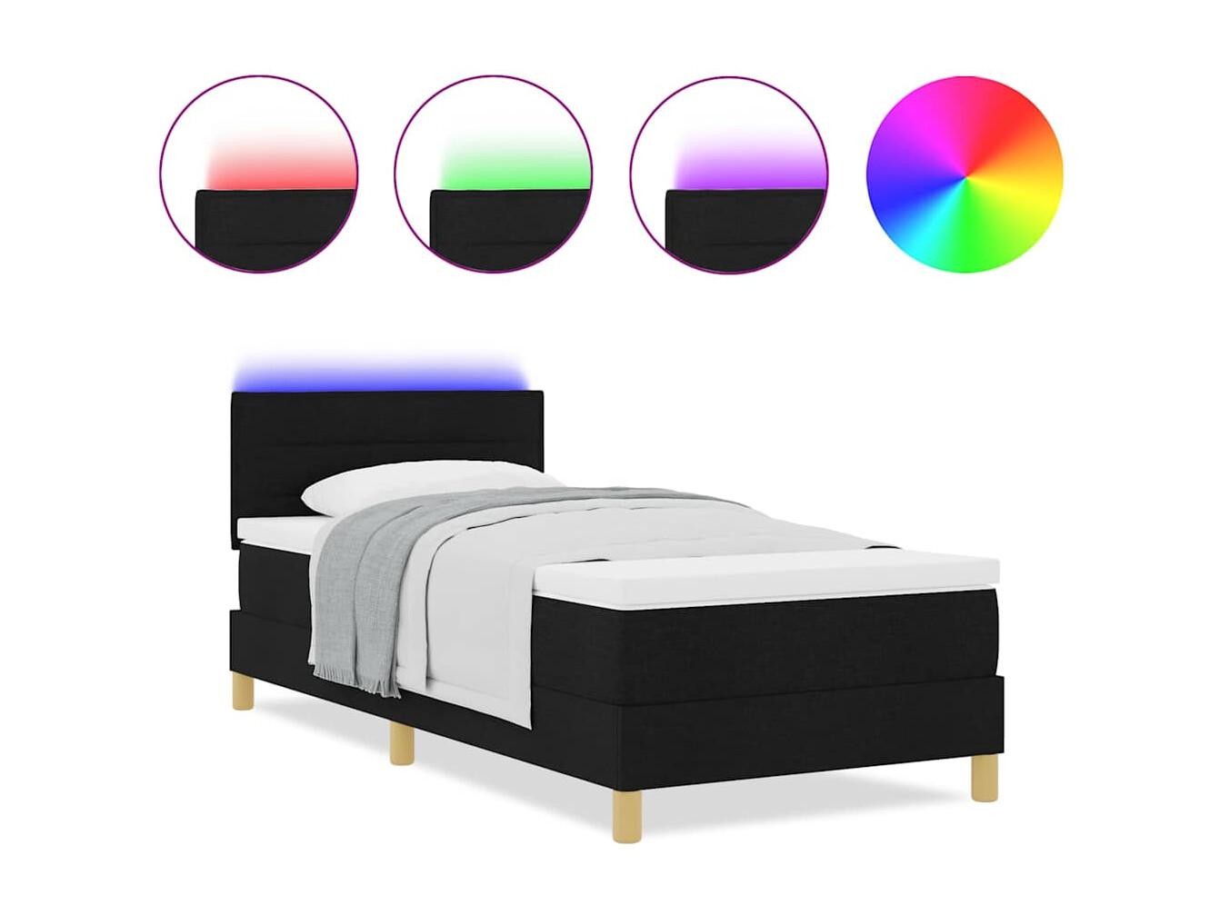 Cama box spring con colchón tela negro 80x200 cm