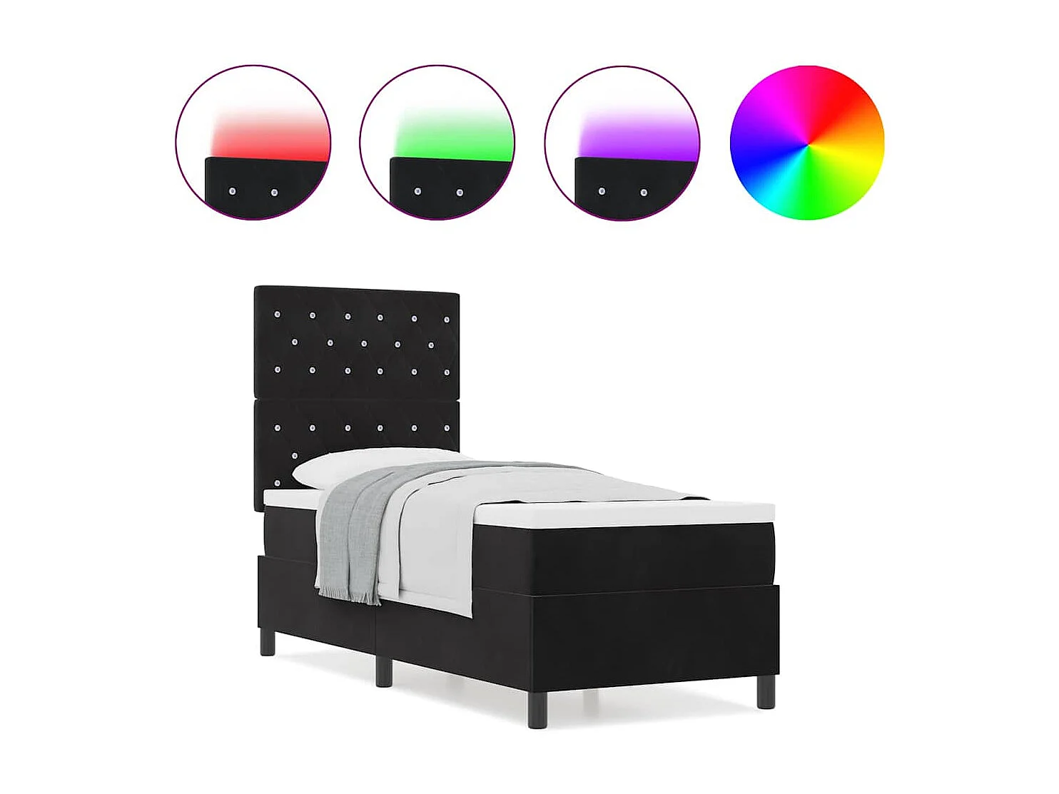Cama box spring con colchón terciopelo negro 80x200 cm