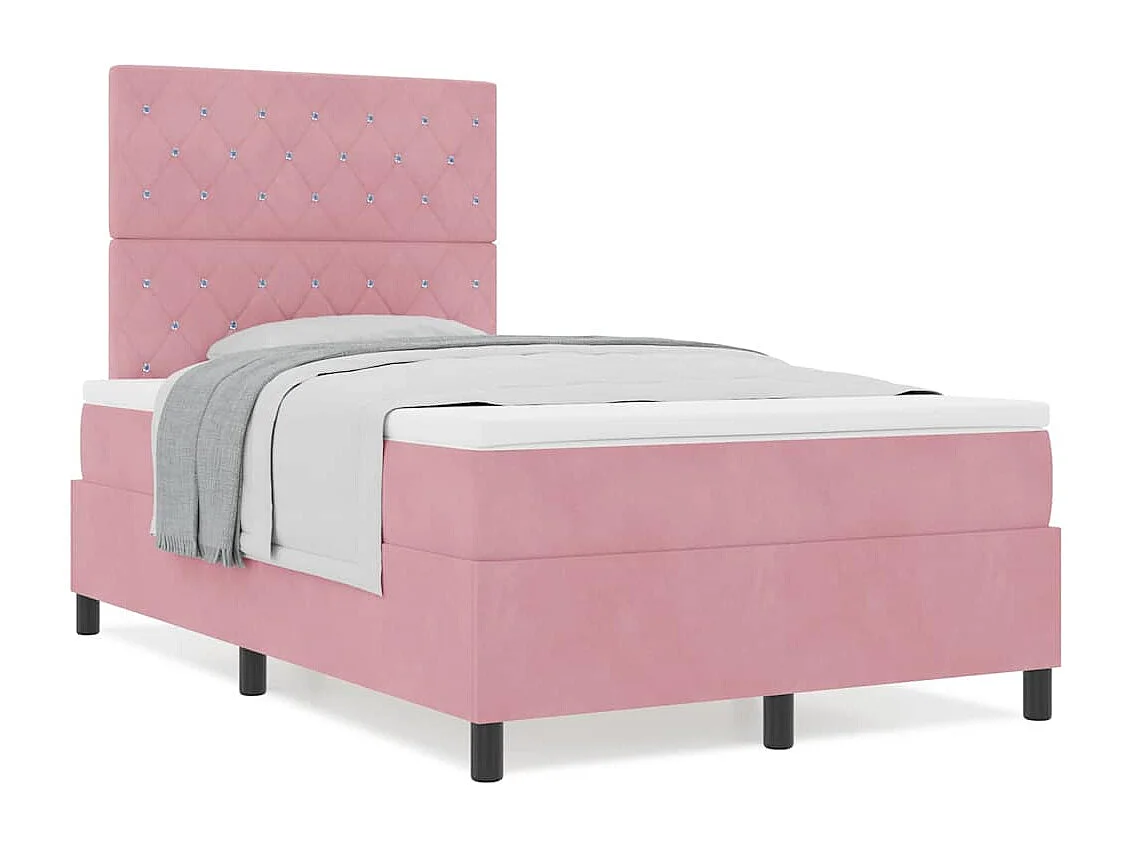 Cama tipo Box Spring con colchón Rosa 120 x 200 cm Terciopelo