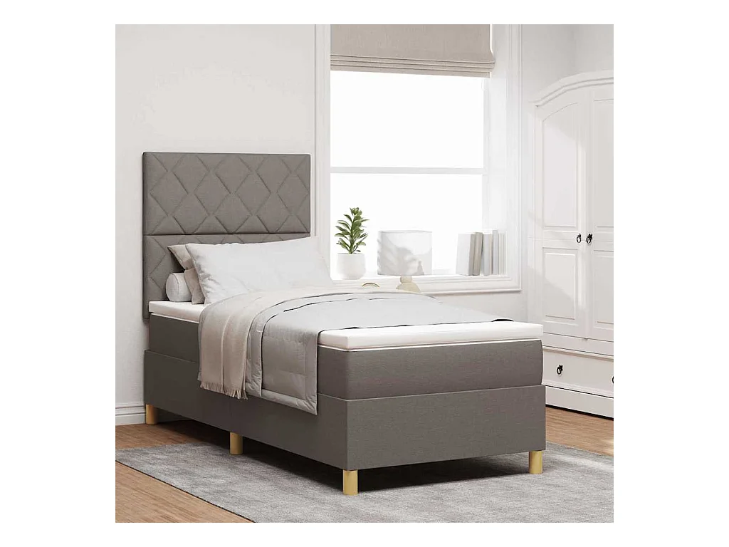 Cama box spring con colchón con colchón Taupé 100 x 200 cm tela