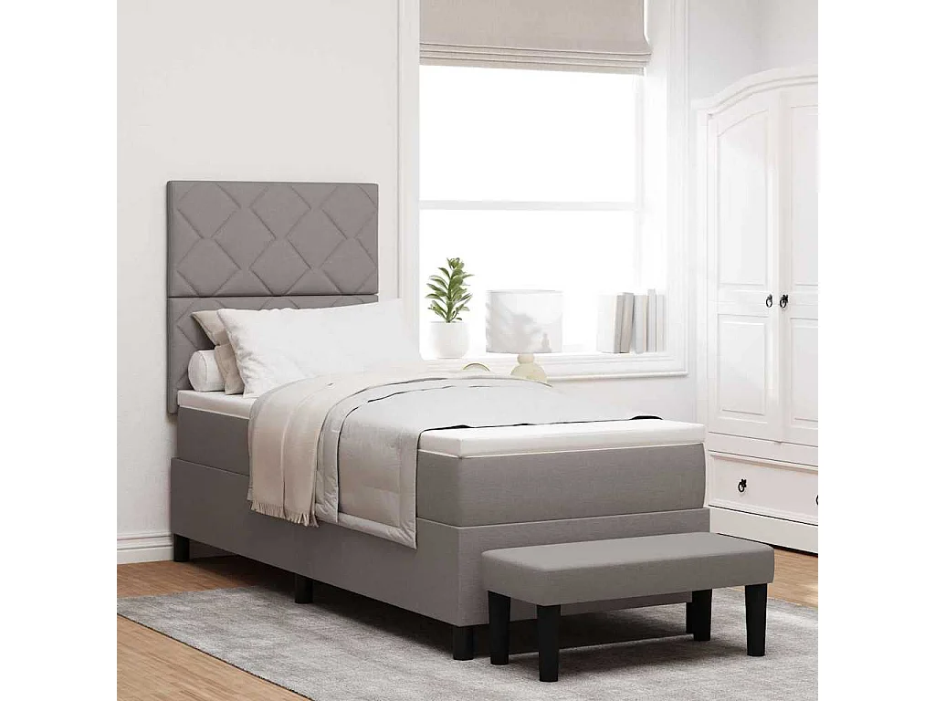 Cama tipo Box Spring con colchón Taupé 80 x 200 cm tela