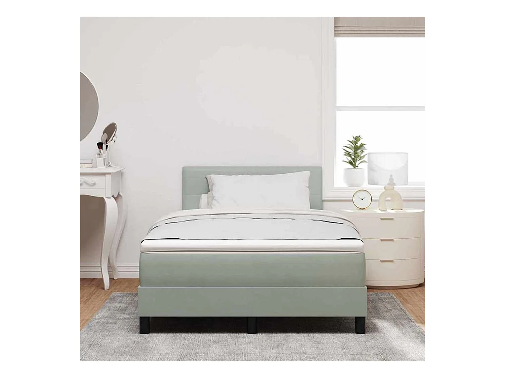 Cama box spring con colchón terciopelo gris claro 120x190 cm