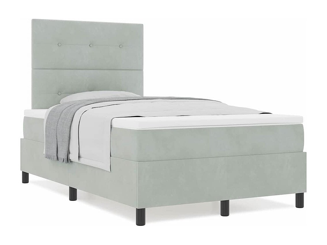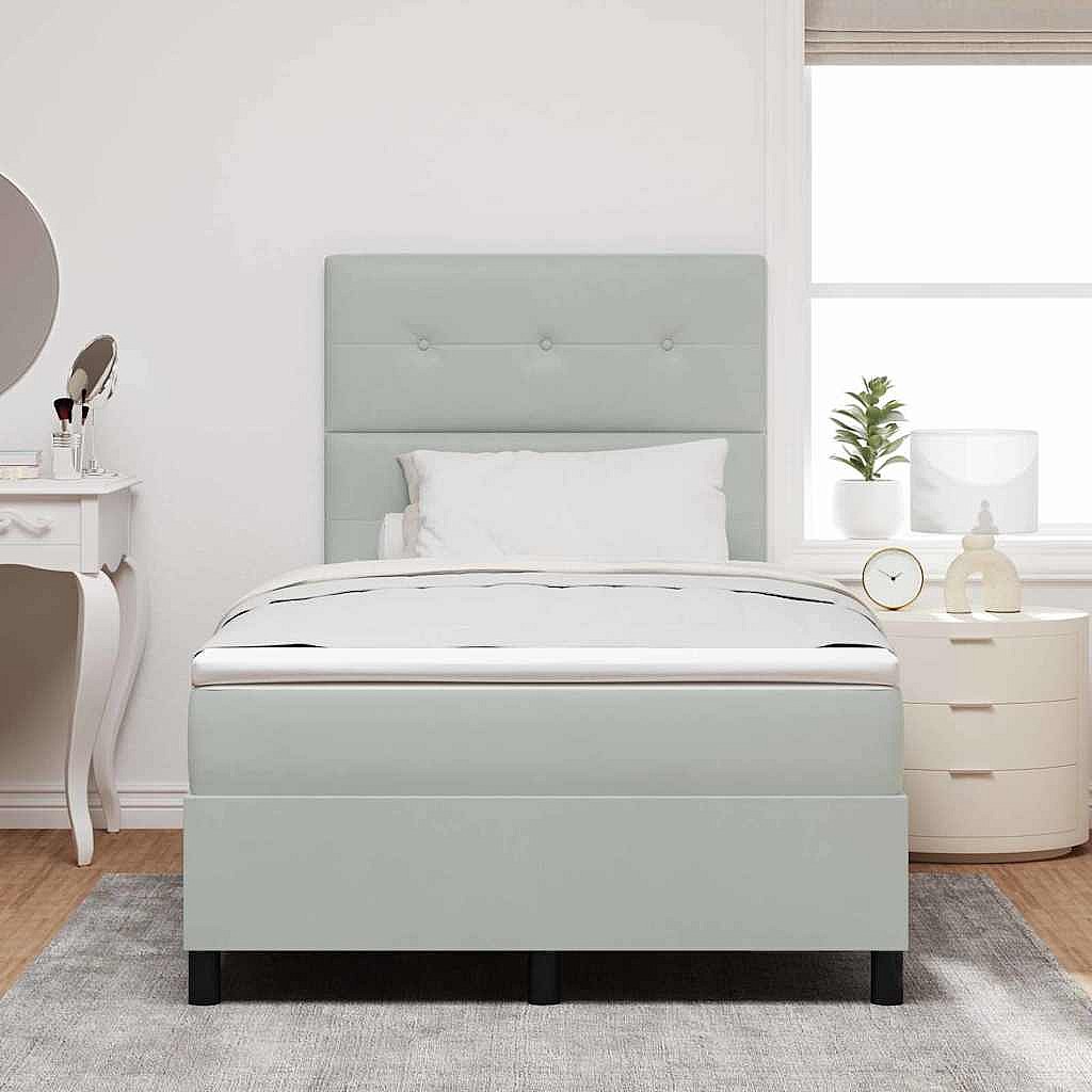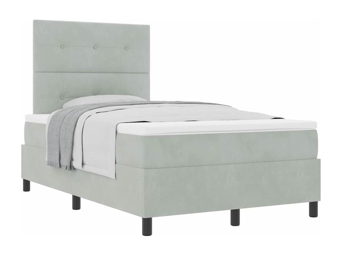 Cama box spring con colchón terciopelo gris claro 120x190 cm