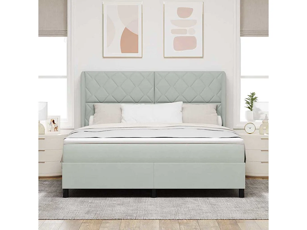 Cama tipo Box Spring Gris claro 180 x 200 cm Terciopelo