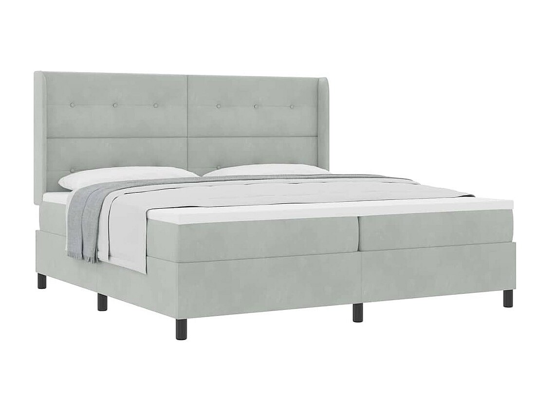 Cama tipo Box Spring Gris Claro 200 x 200 cm Terciopelo