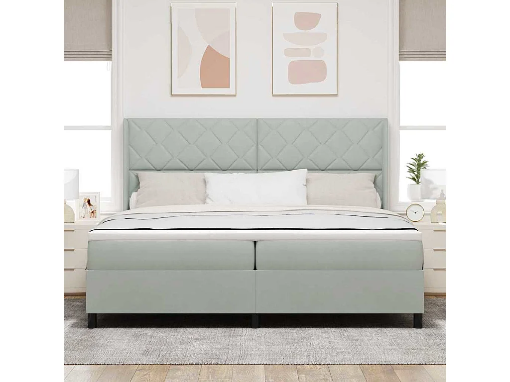 Cama tipo Box Spring Gris claro 200 x 200 cm Terciopelo