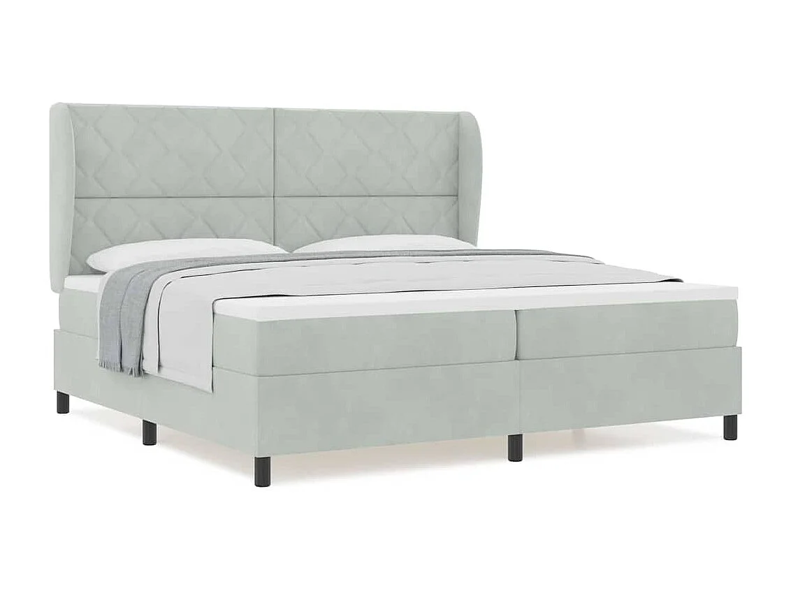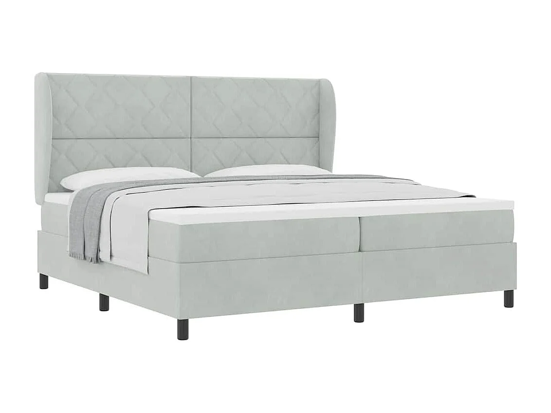Cama tipo Box Spring Gris Claro 200 x 200 cm Terciopelo