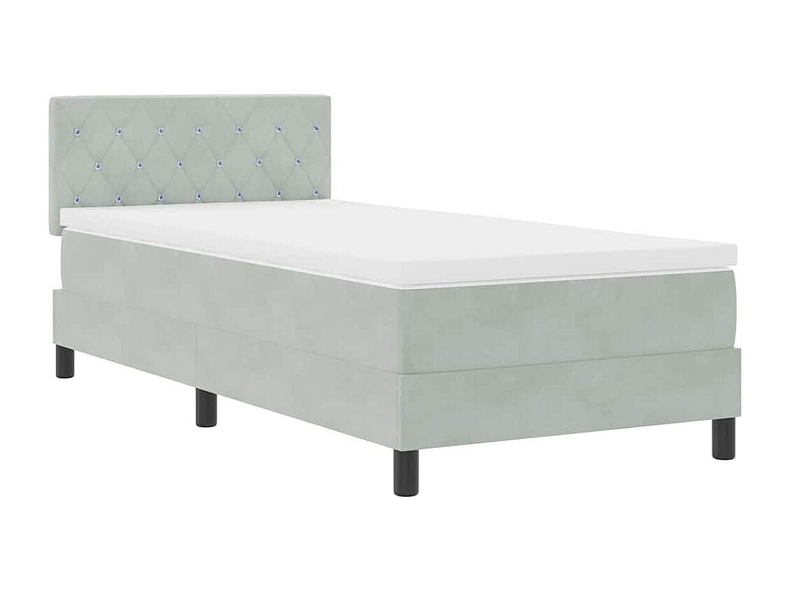 Cama box spring con colchón terciopelo gris claro 90x190 cm