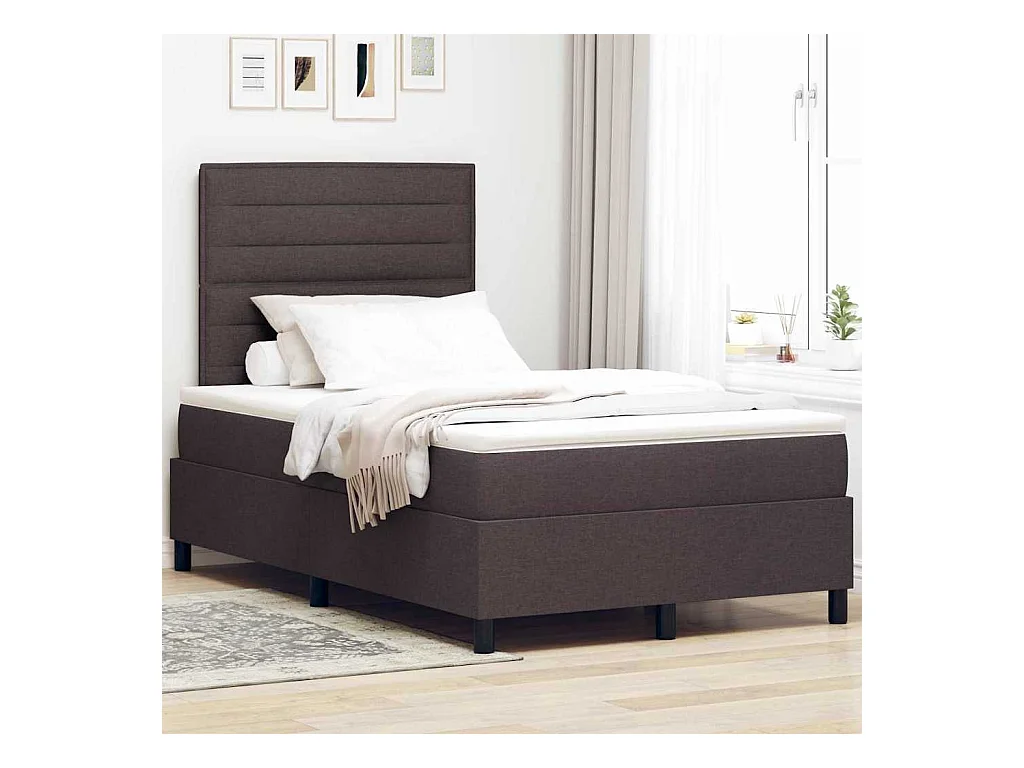 Cama box spring con colchón Marrón Oscuro 120 x 200 cm tela