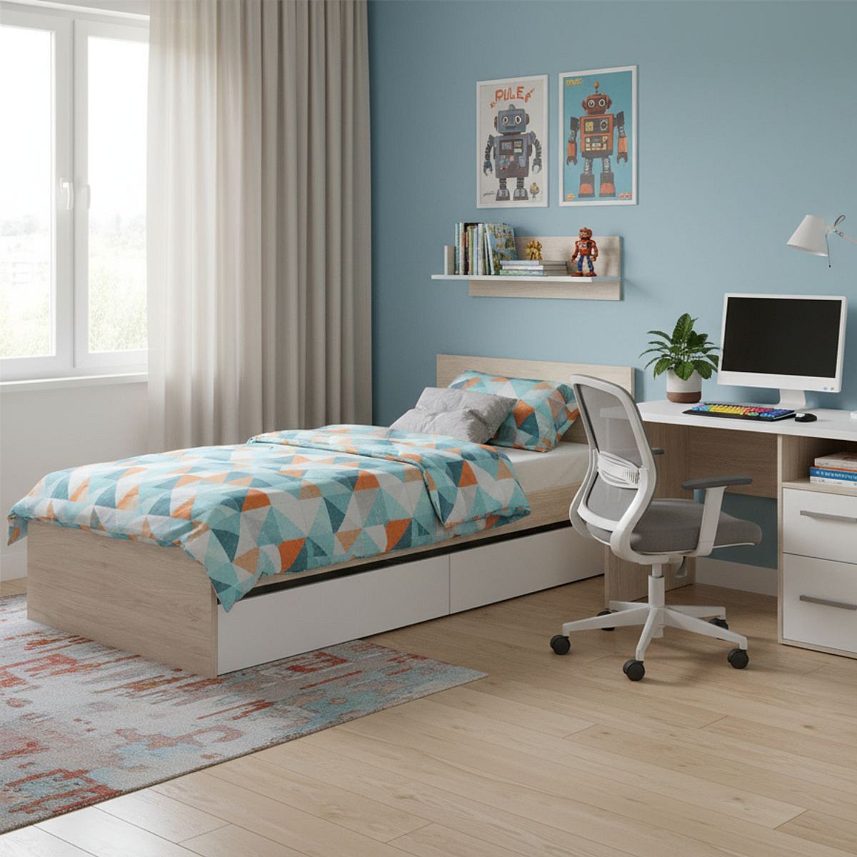 Cama Top con cajones blanco/natural 68x96x194,8 cm
