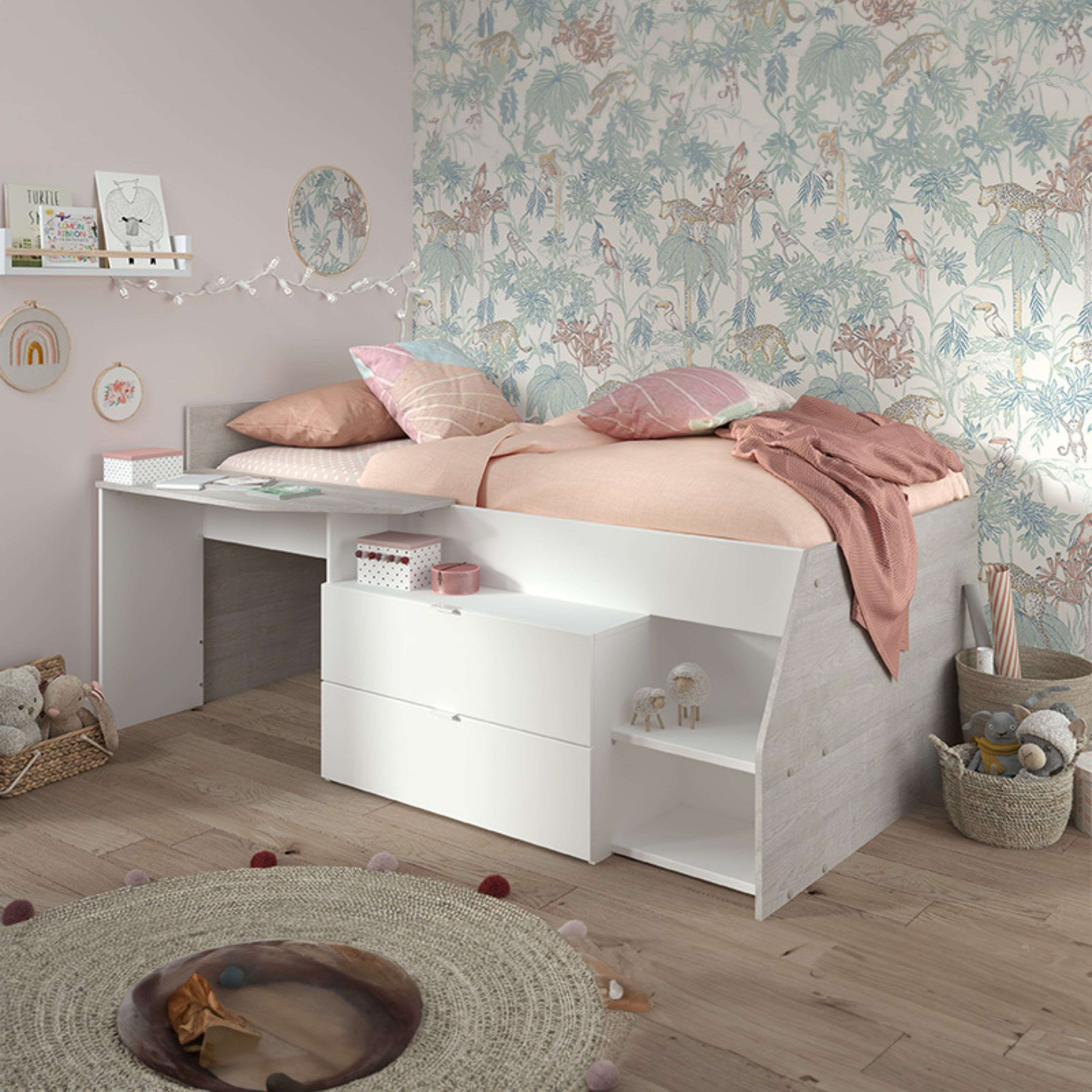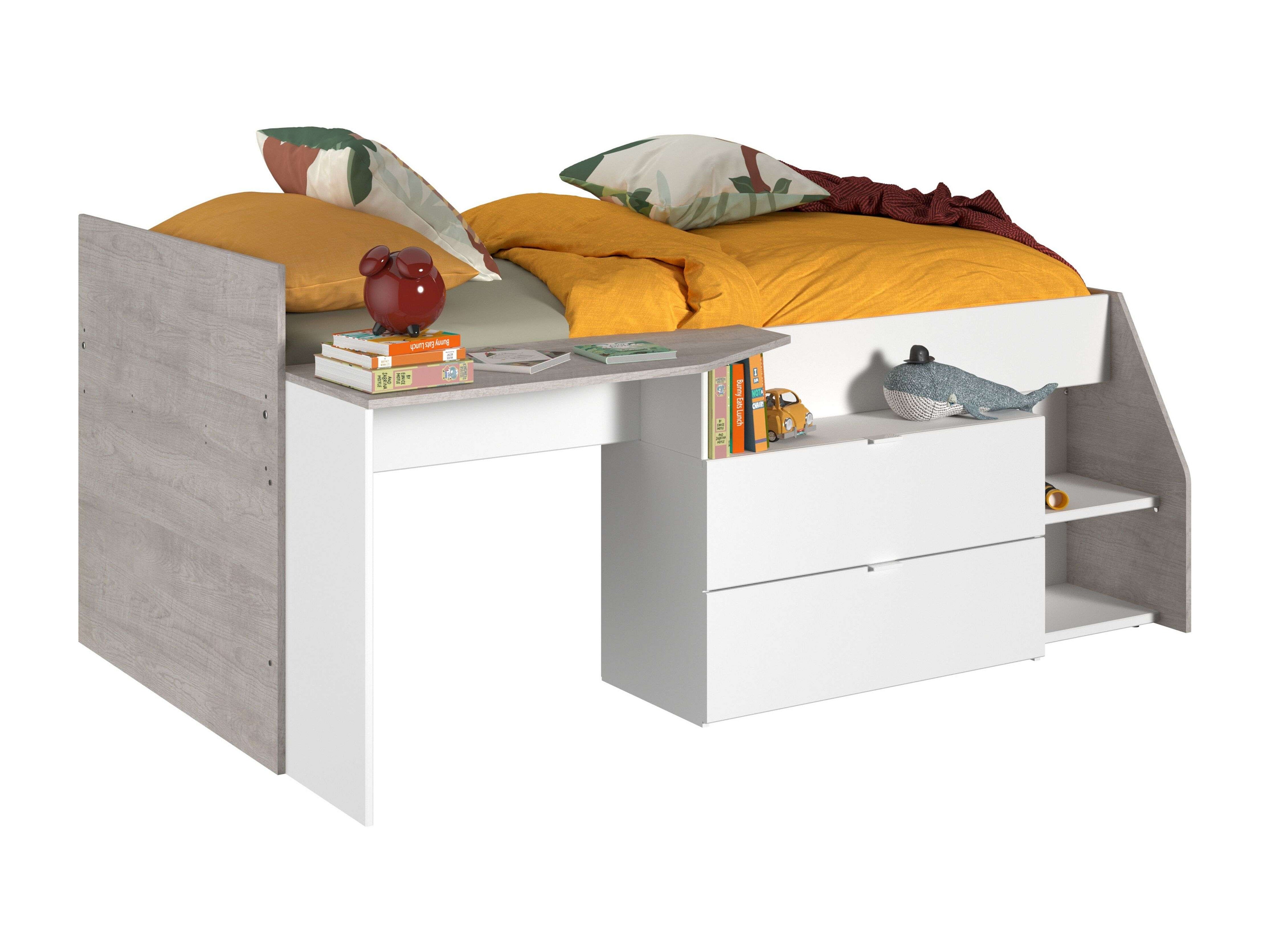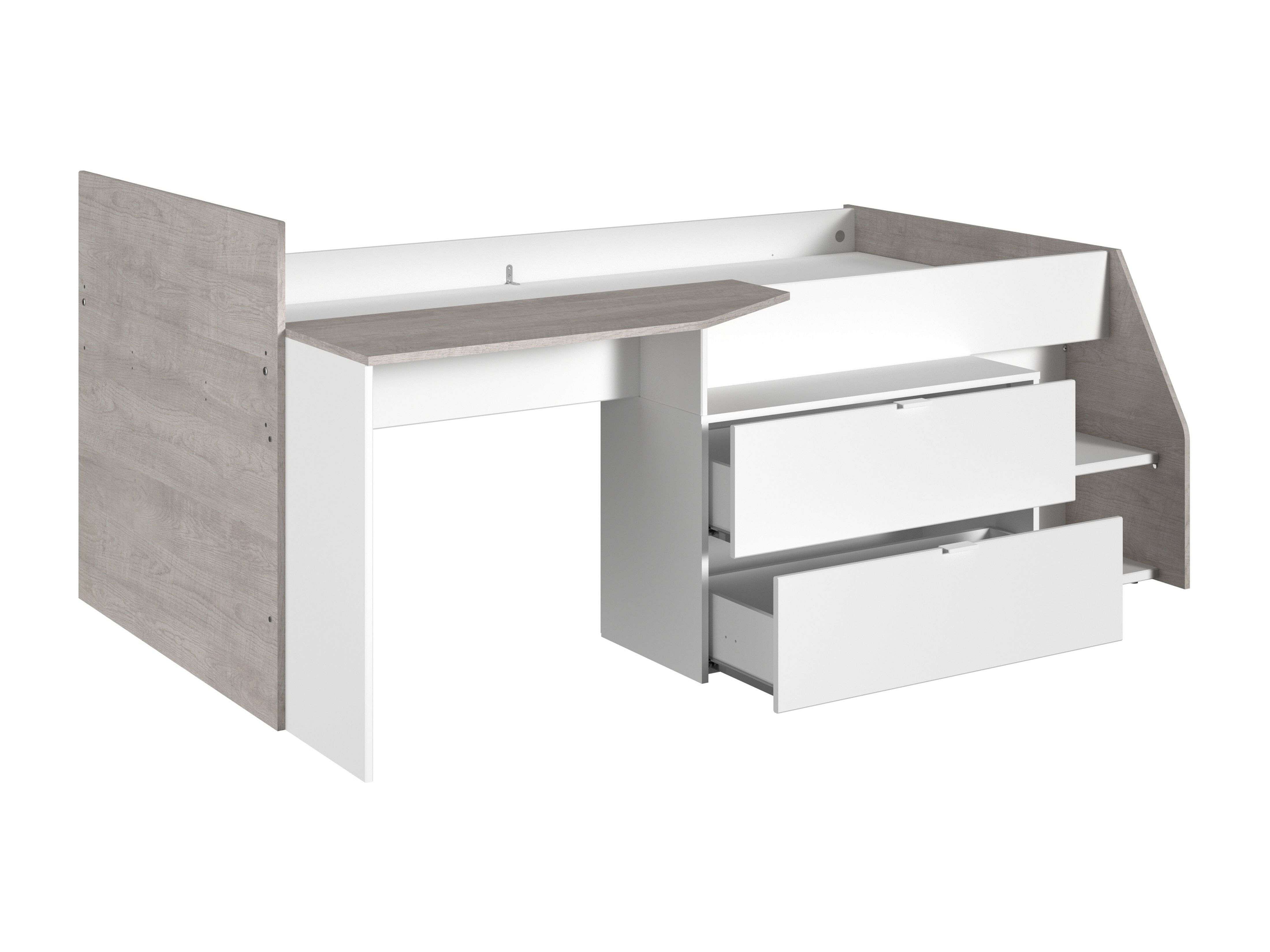 Cama Valky con escritorio 2 caj. blanco/gris dormitorio mueble 90X200/190 cm