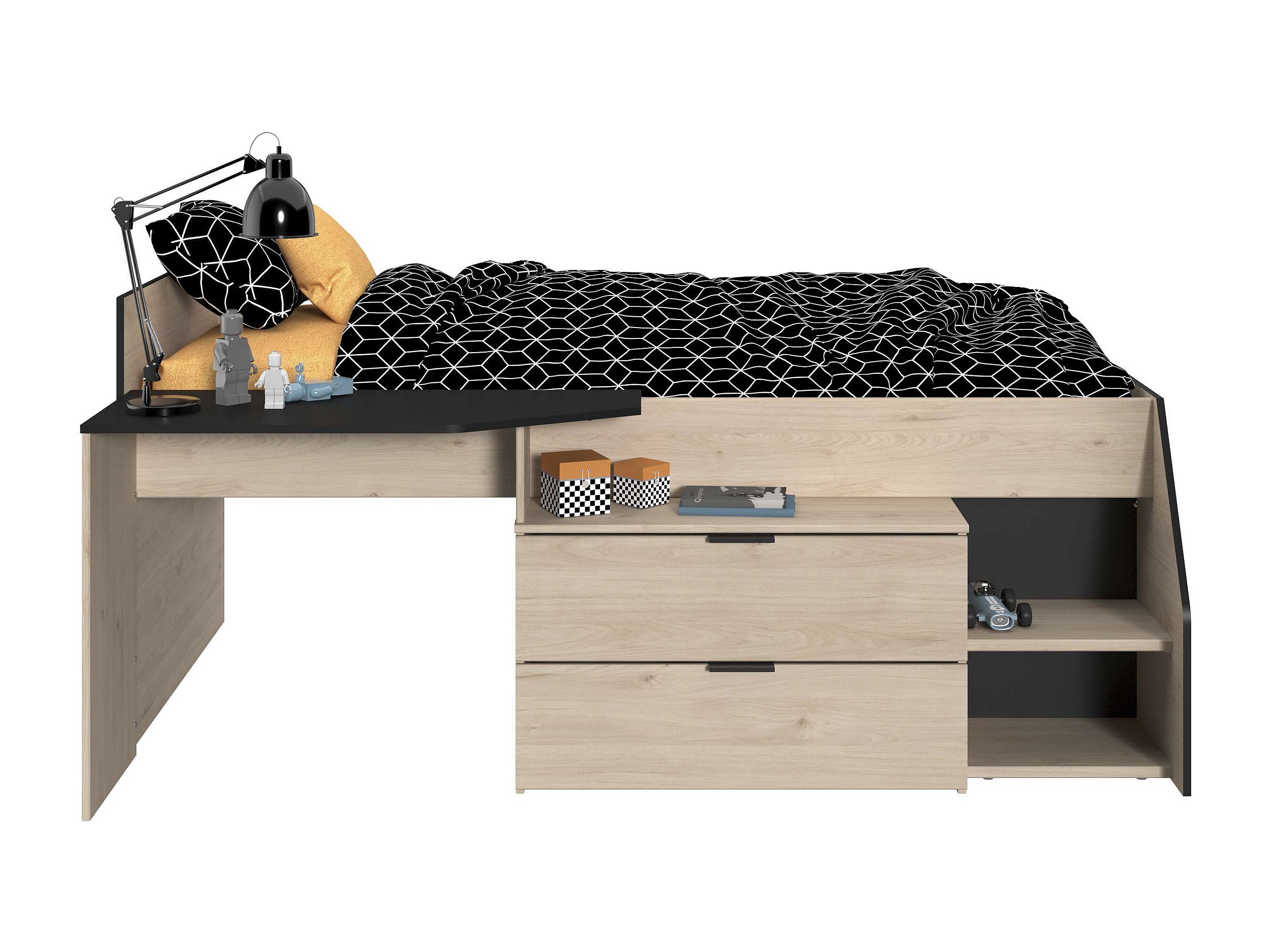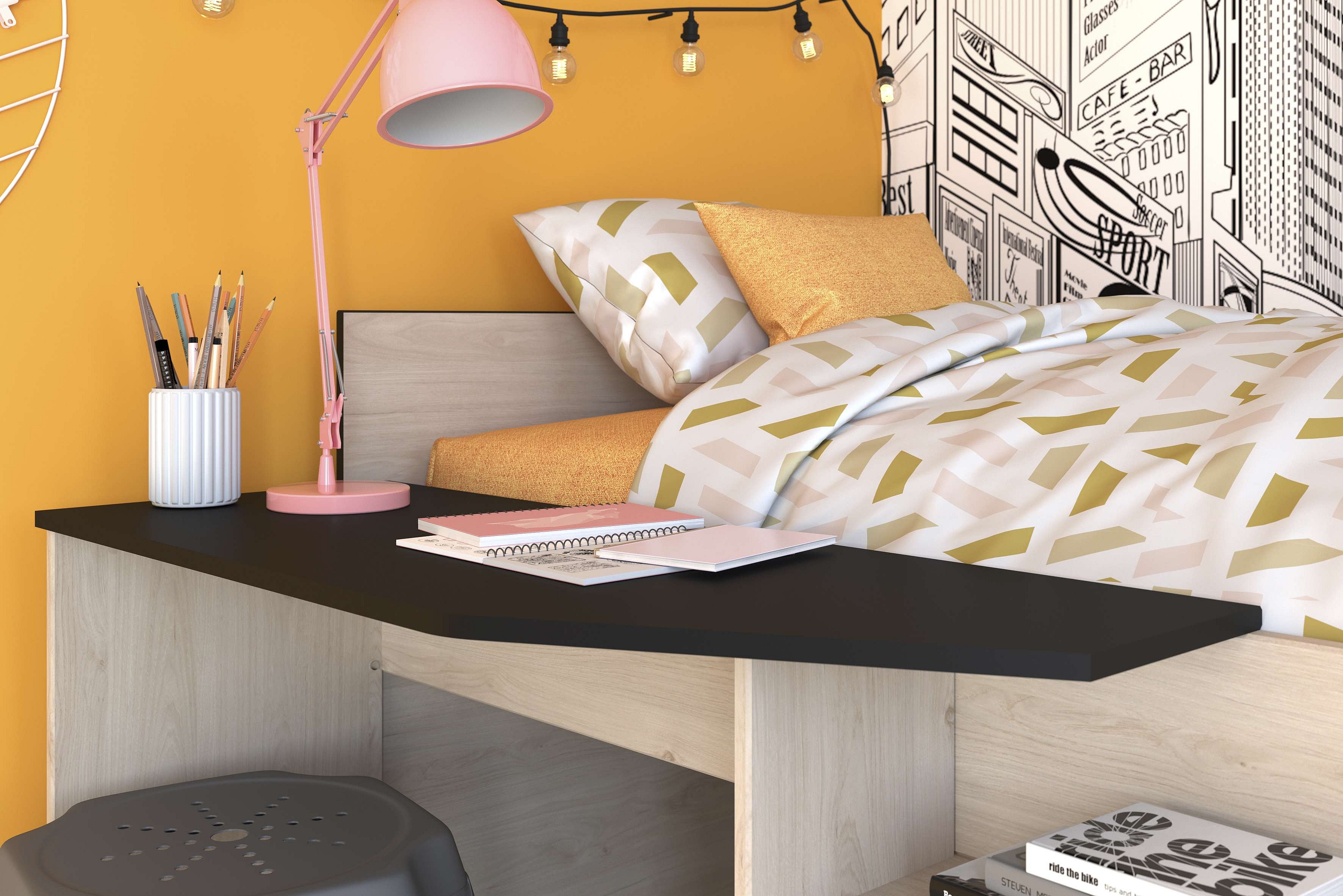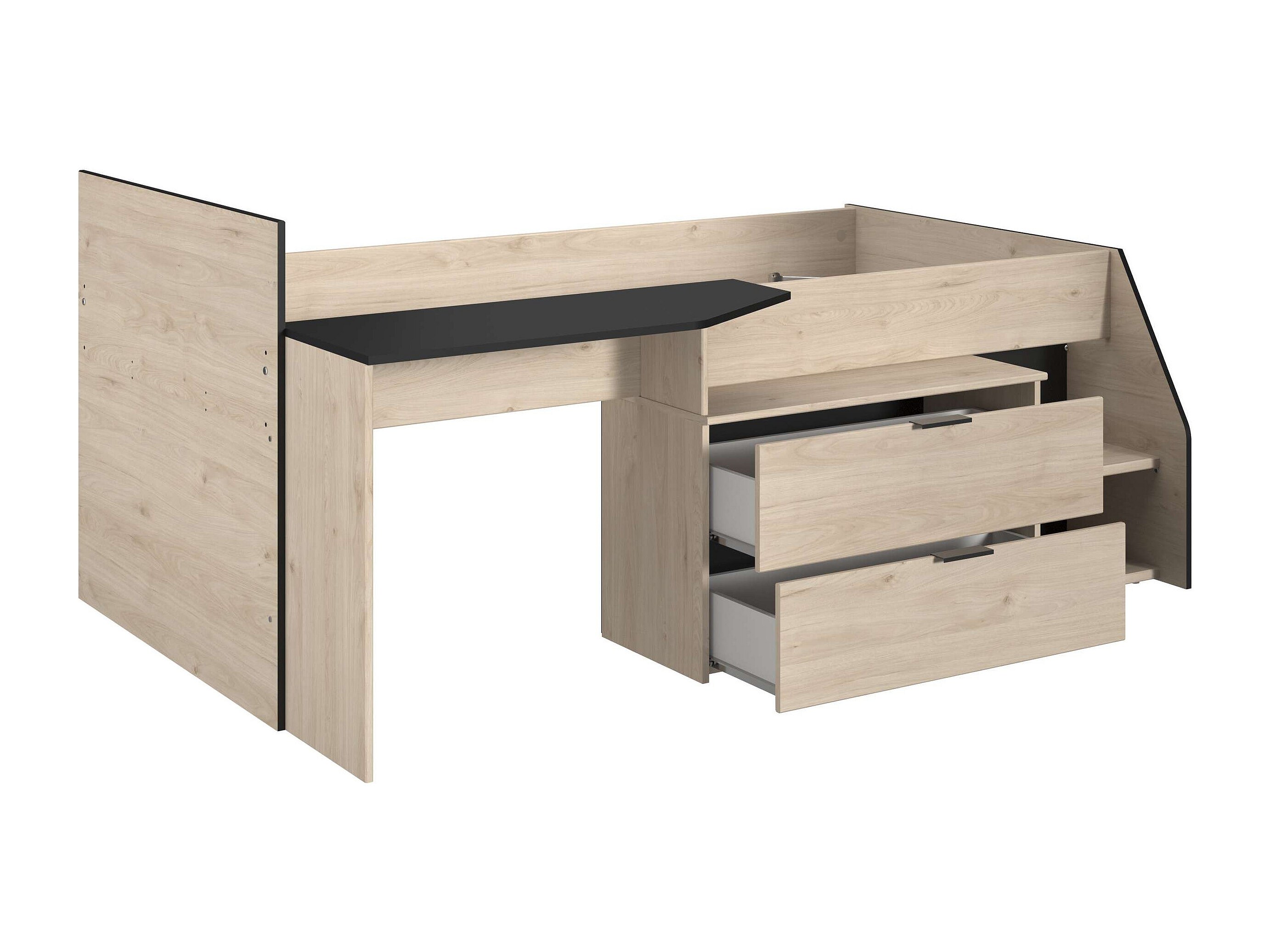 Cama Valky con escritorio 2 cajones infantil roble/negro 90X200/190 cm