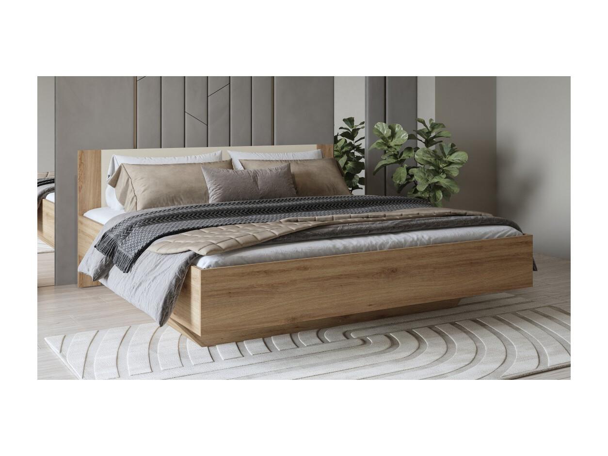 Cama VERTIGO – 180x200 cm con somier incluido – Roble salvaje y beige arena – Pie de cama diseño