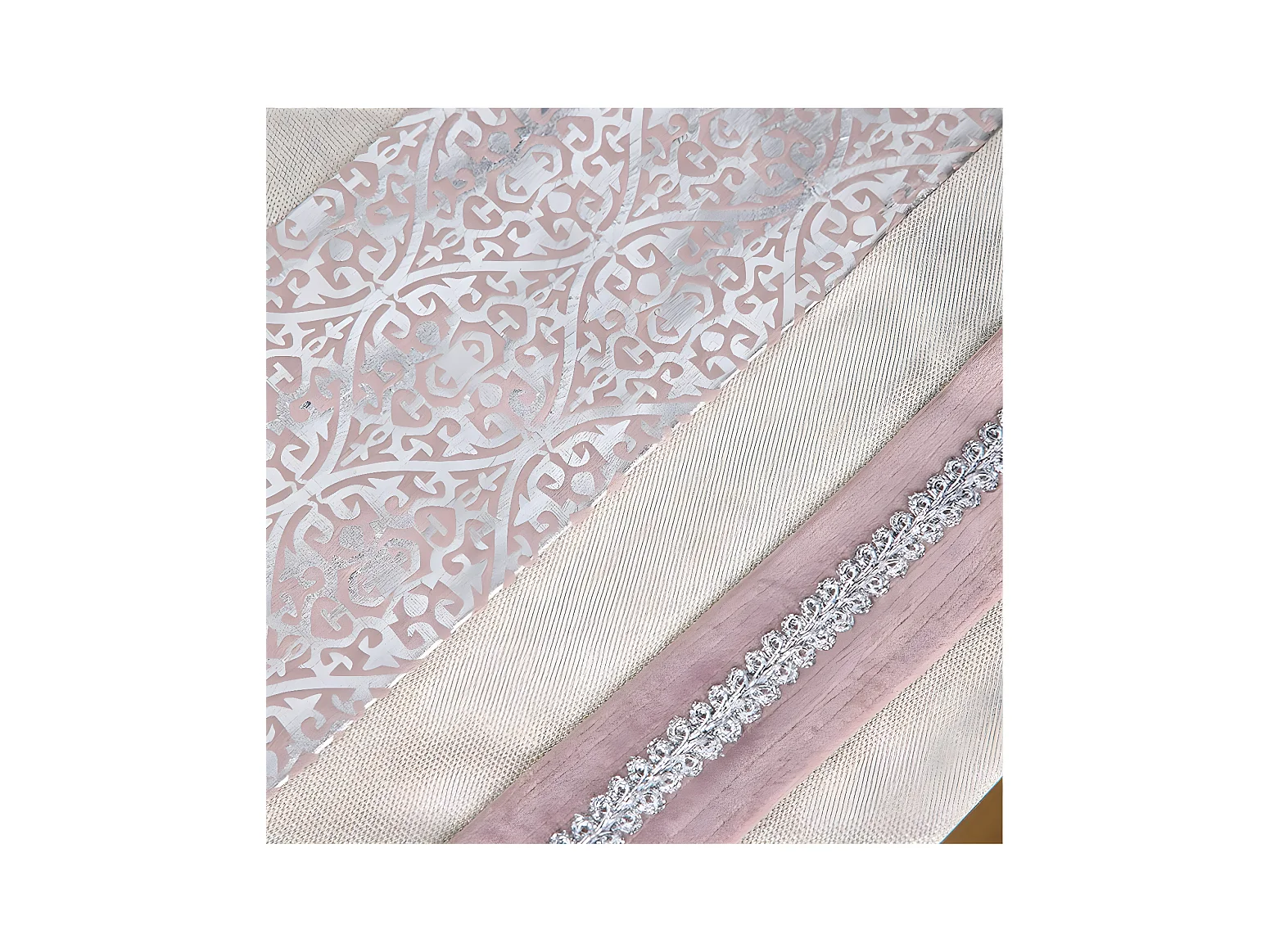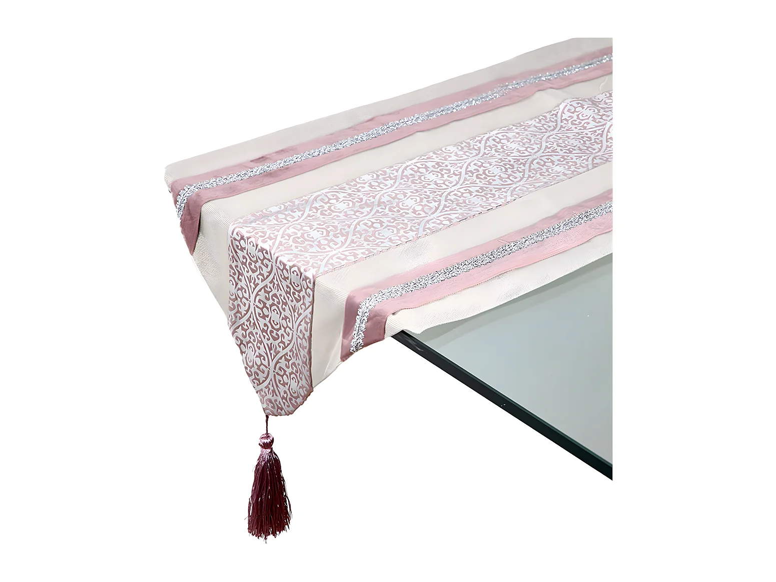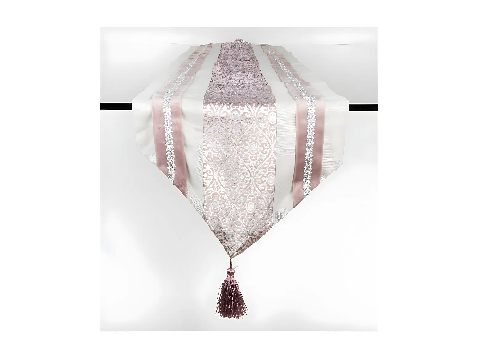 Camino 33*180 rosa flor de lis terciopelo pompones louise
