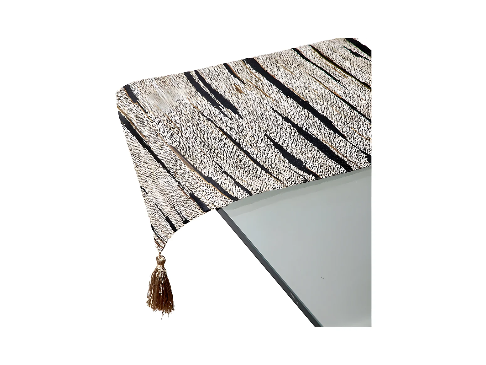 Camino de mesa en tela tipo rustico en tonos gris y negro lulo