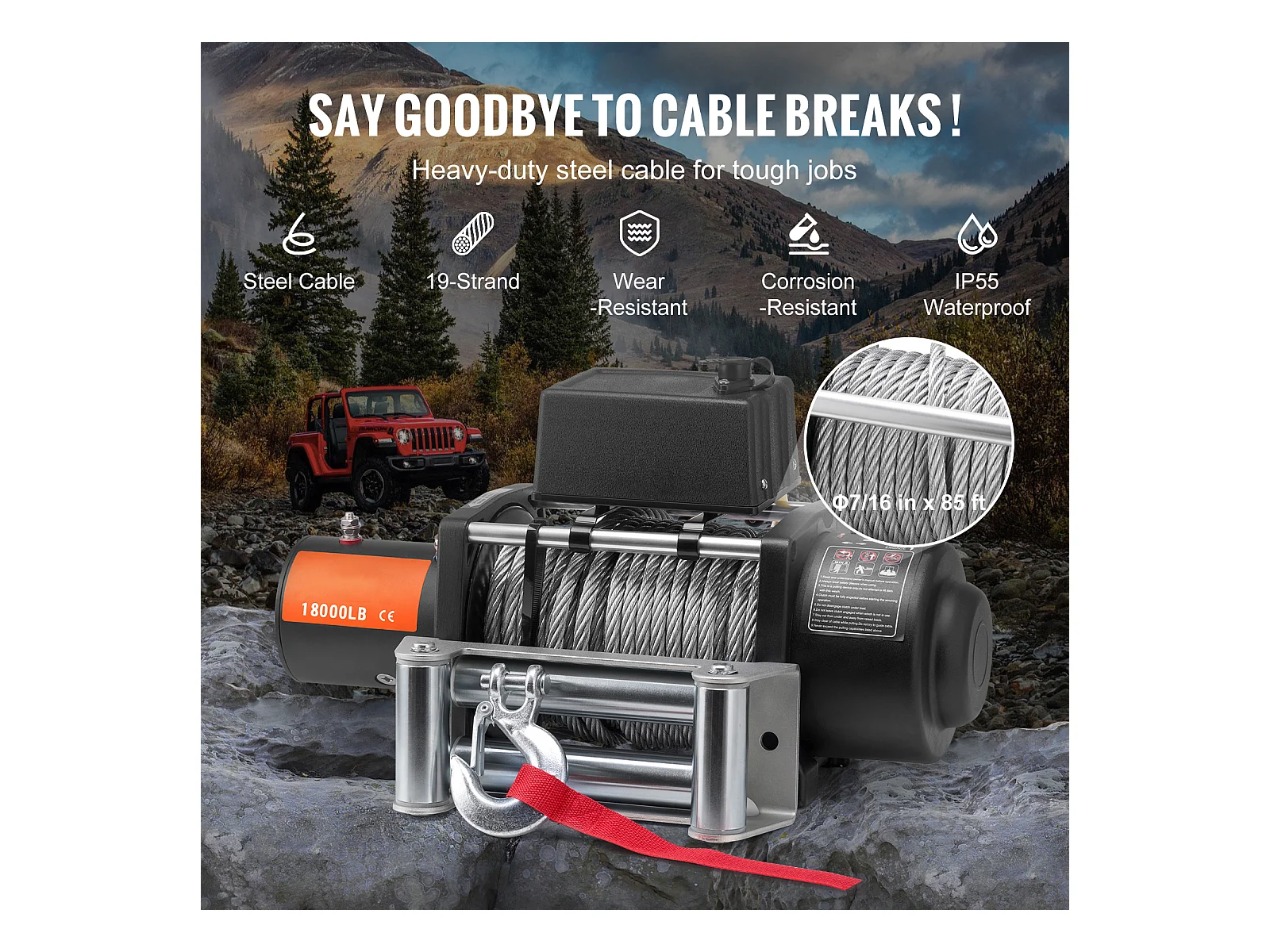 Camión con Cabrestante Eléctrico SucceBuy, con Capacidad de 18 000 lb, con Cable de Acero, Resistente al Agua IP65 y Equipado con Control Remoto