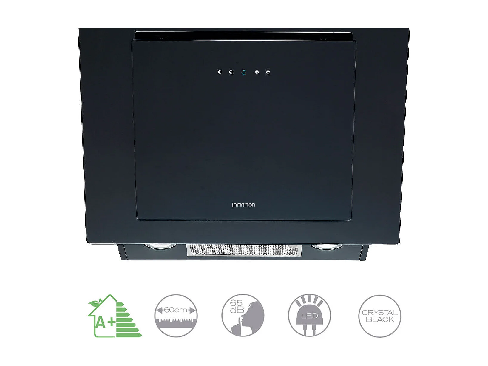 Campana decorativa Infiniton CMPTRAL-N68 145W 720m3/h táctil acabado cristal A+ negro 60 cm