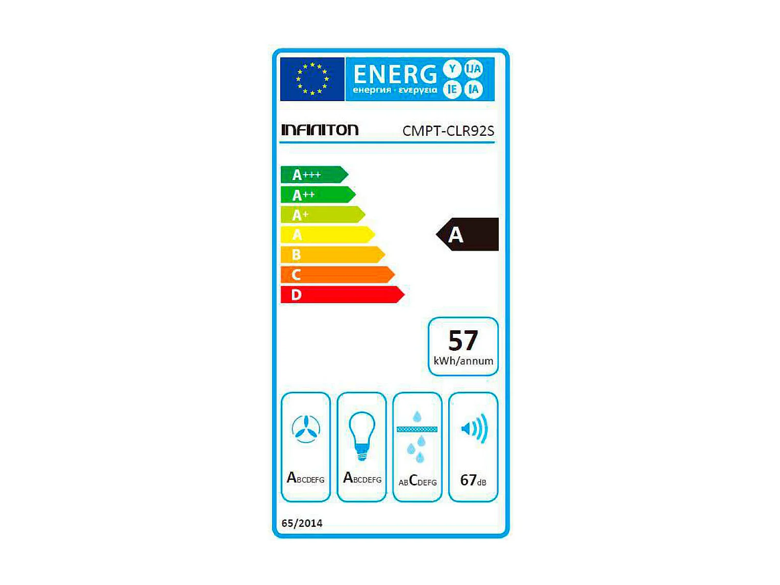 Campana extractora Infiniton CMPT-CLR92S 800m3/h 250W panel táctil y mando a distancia inox